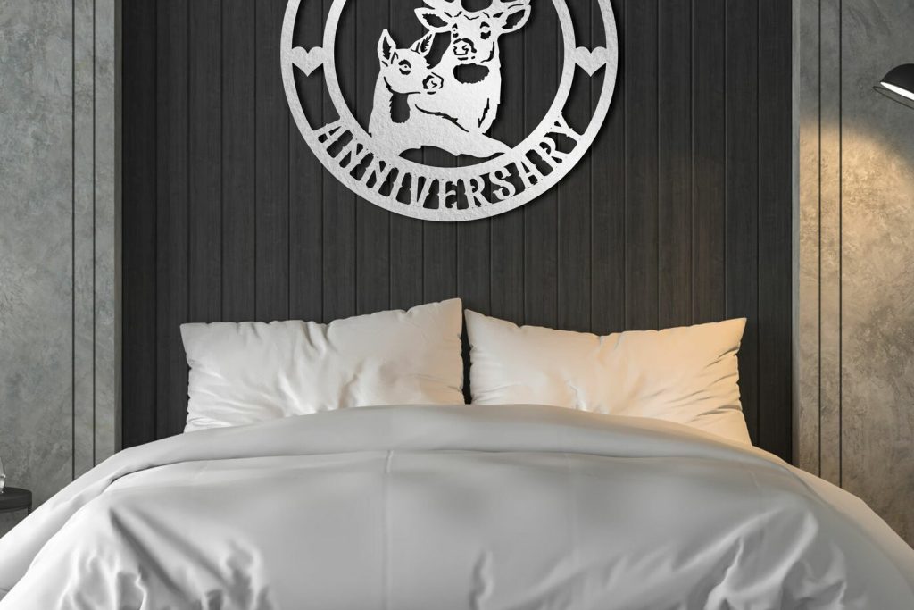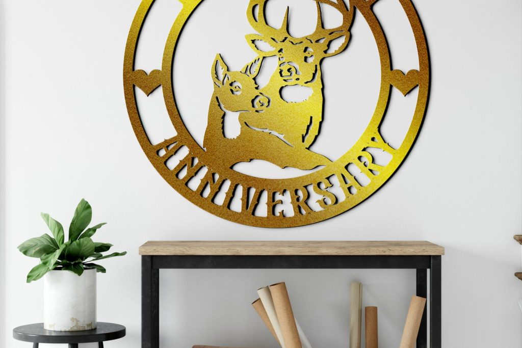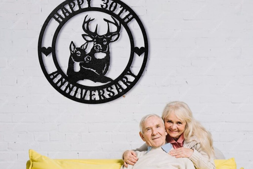 Custom Anniversary Deer Couple Metal Sign with Names