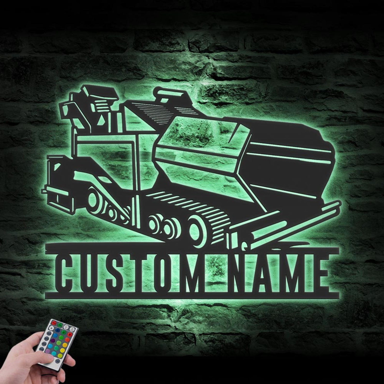 Custom Asphalt Paver Truck Metal Art with LED Light