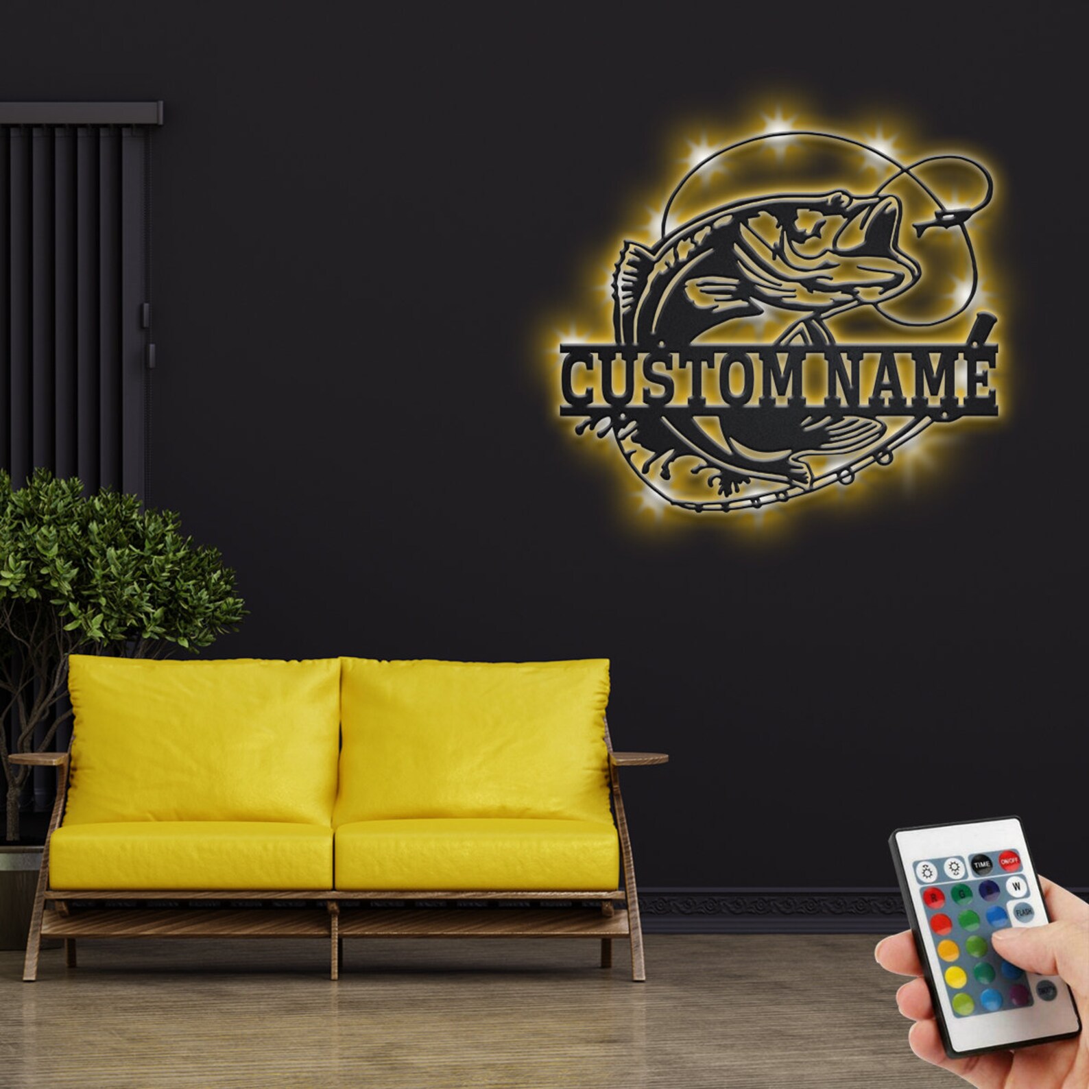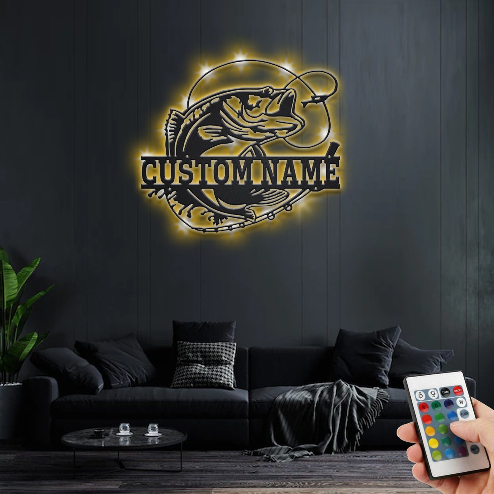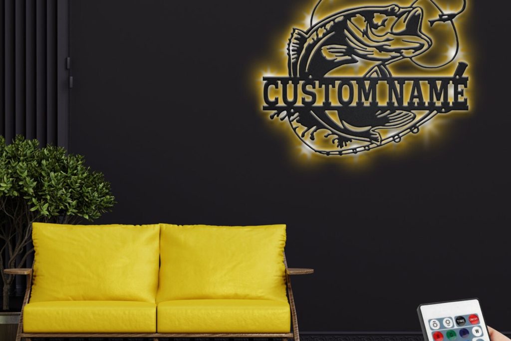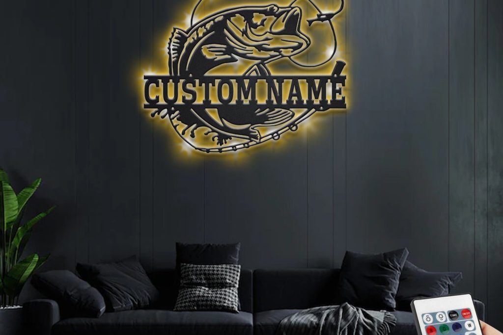 Custom Bass Fishing Sign, LED Light Decor
