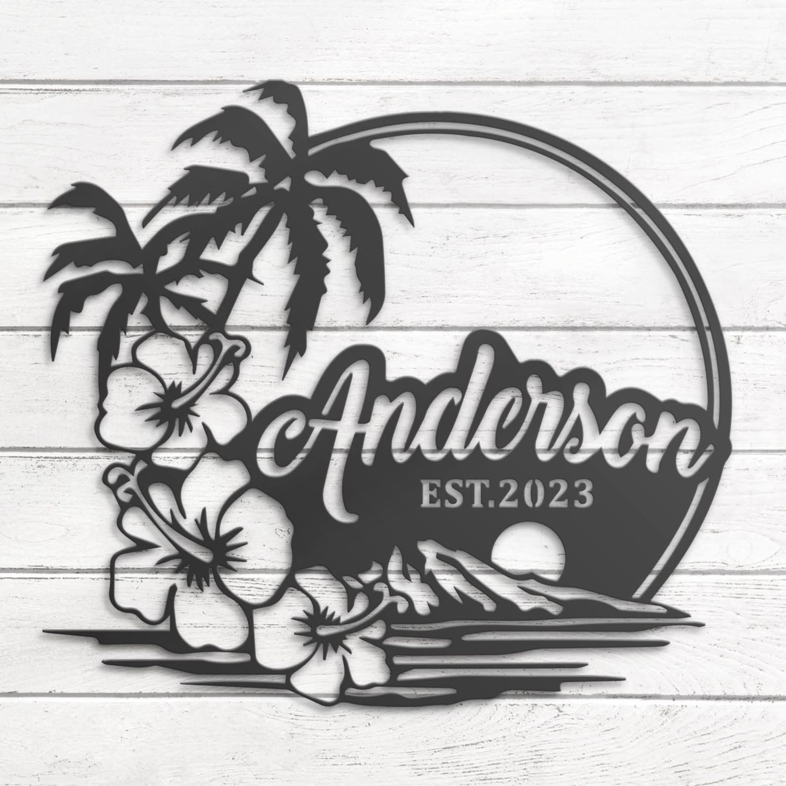 Be the first to review “Custom Beach House Hawaiian Flower Scene Metal Wall Art – LED Light Sign”