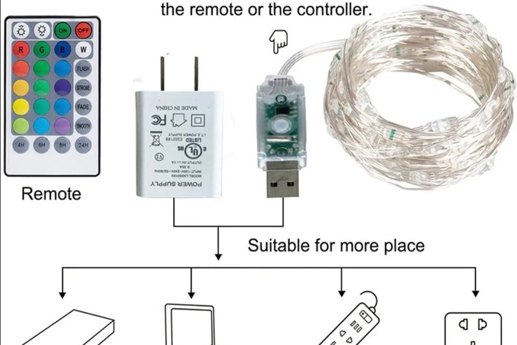 The USB plug enables you to plug this string of LEDs into a USB hub, and a power adapter, and you can go to the store and buy a CR2025 type button cell battery.