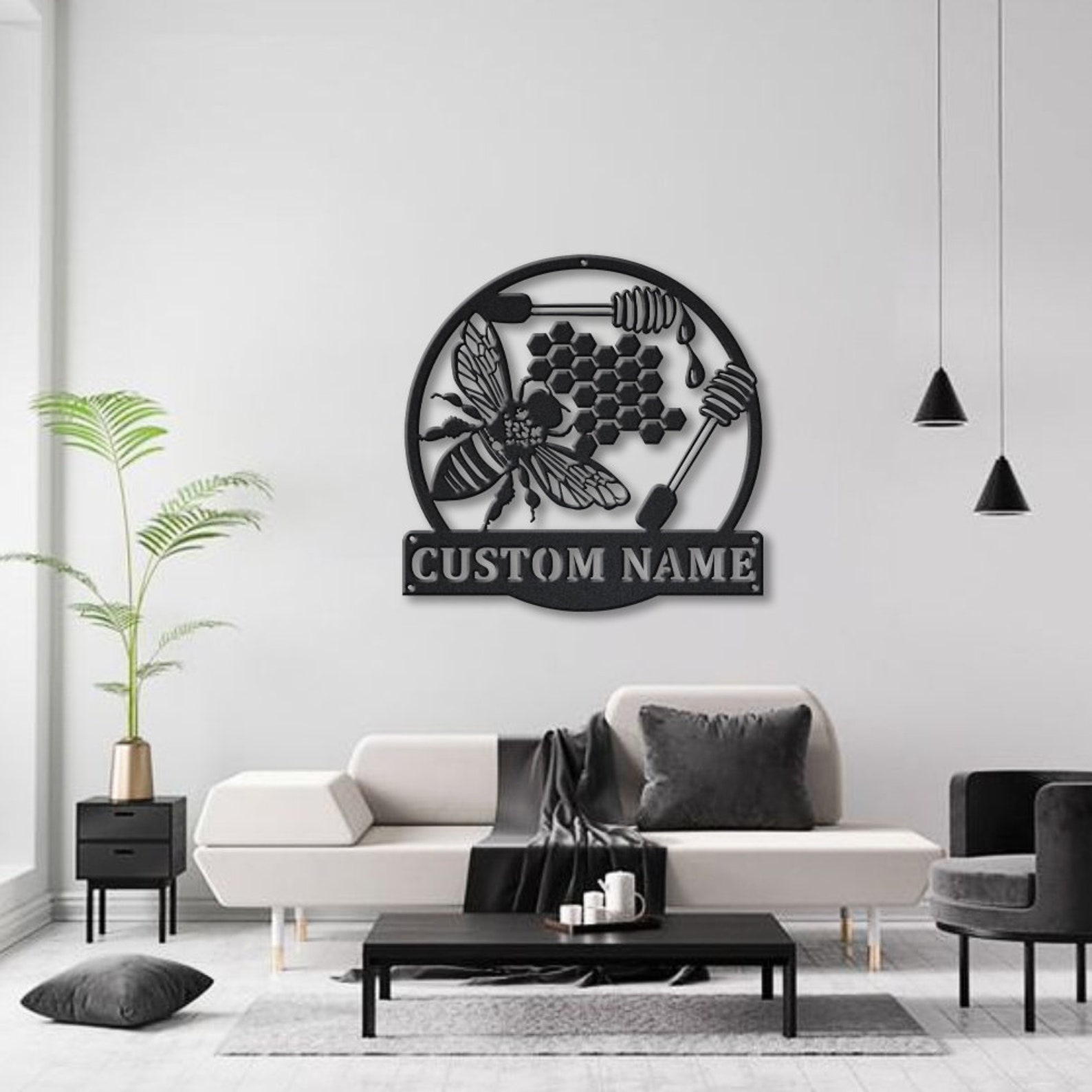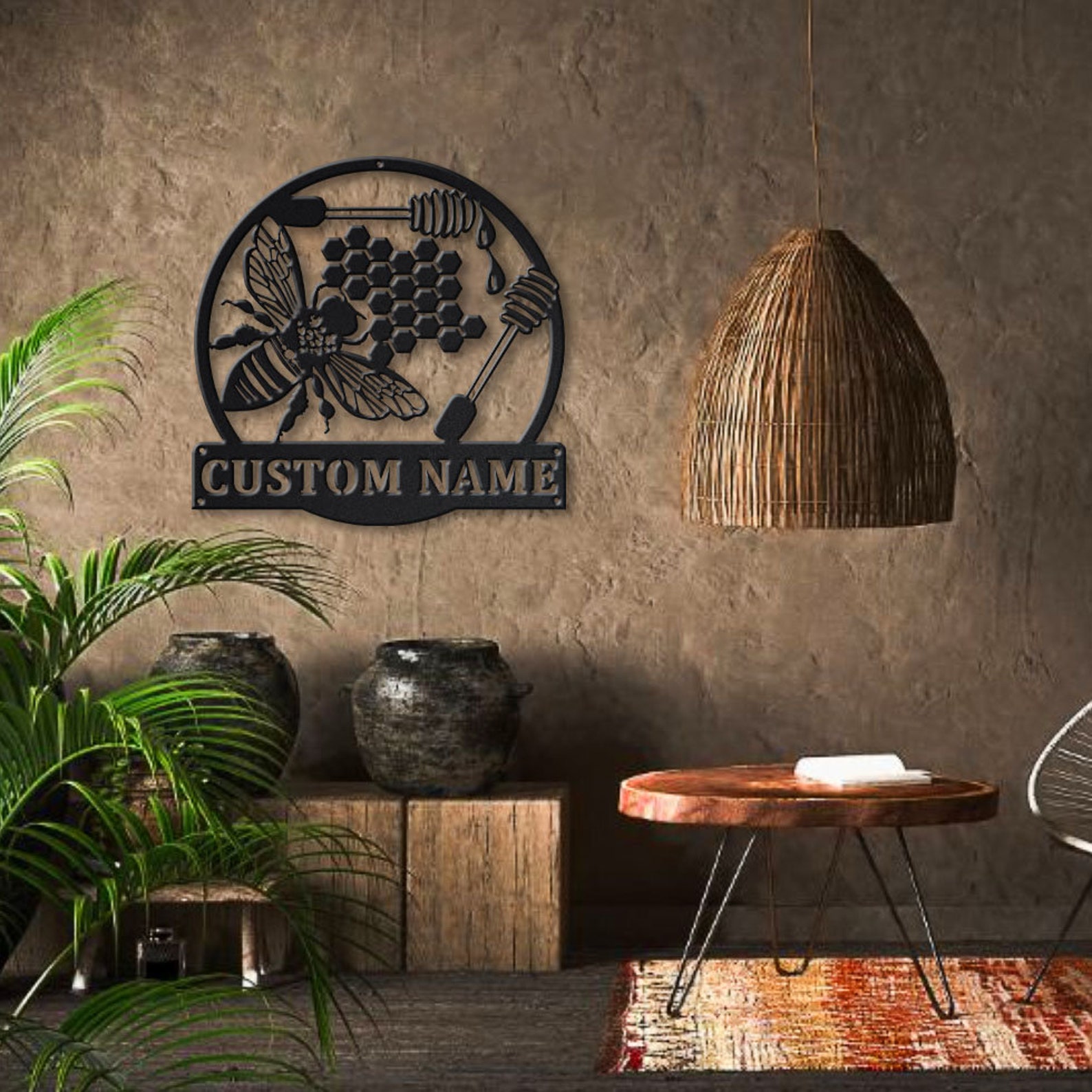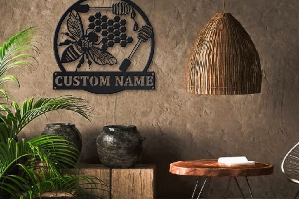 Custom Bee Honeycombs Monogram Metal Sign – Outdoor