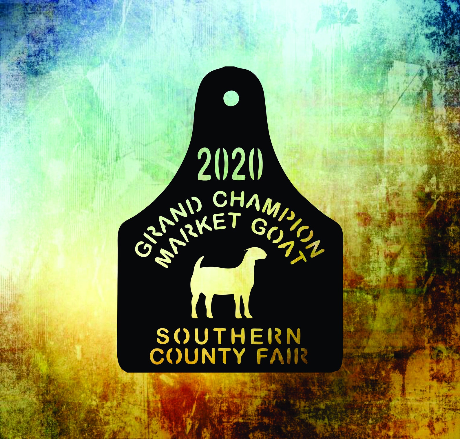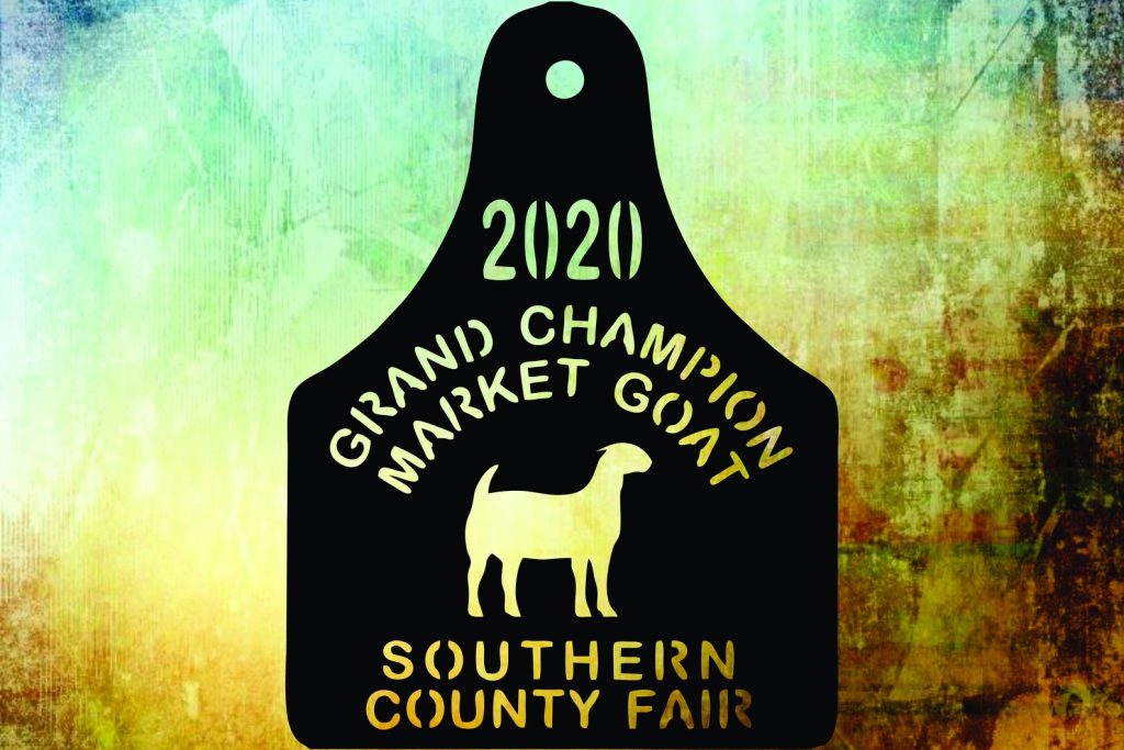 Goat ear tag award 15" or 18" plasma cut metal ear tag sign or award with choice of goat.