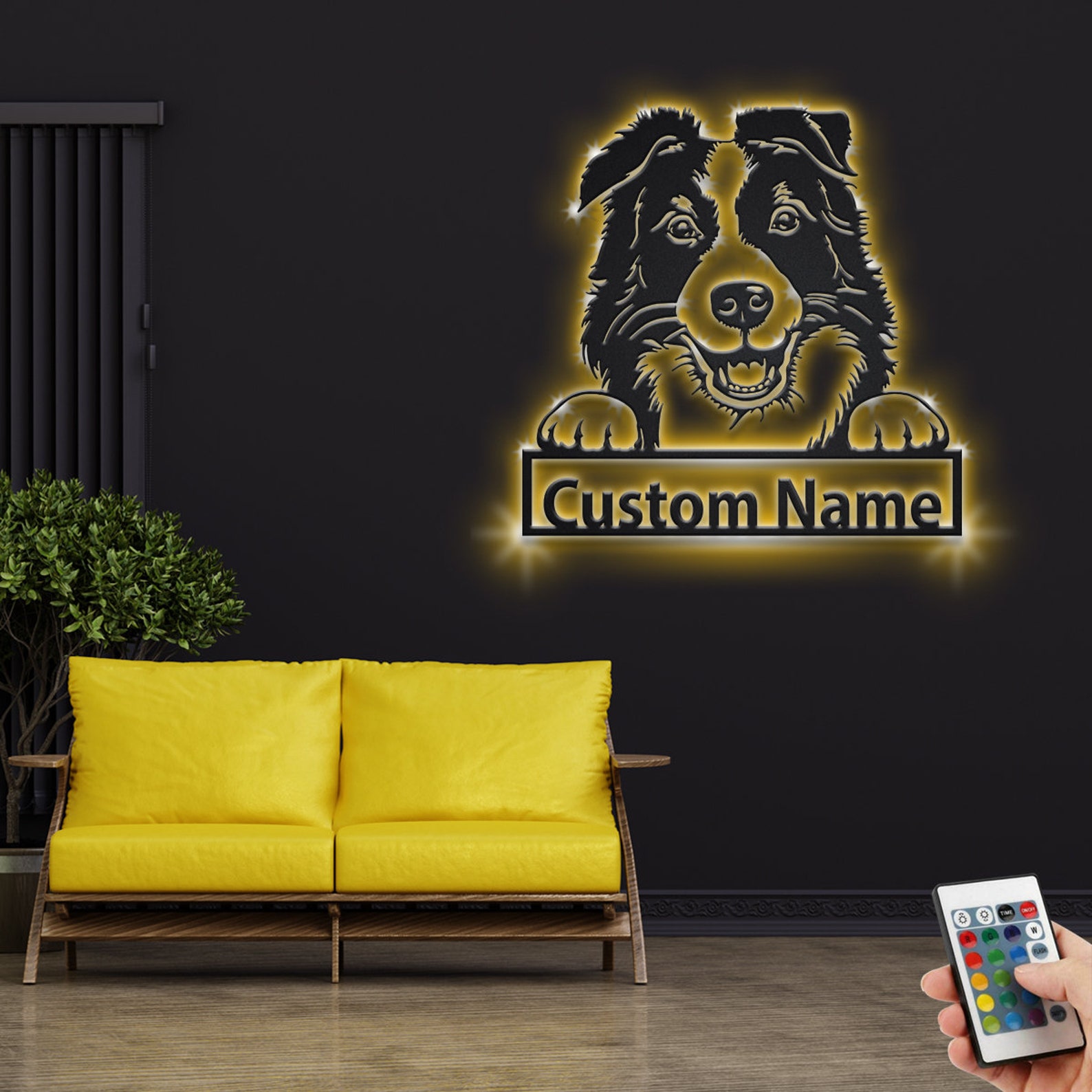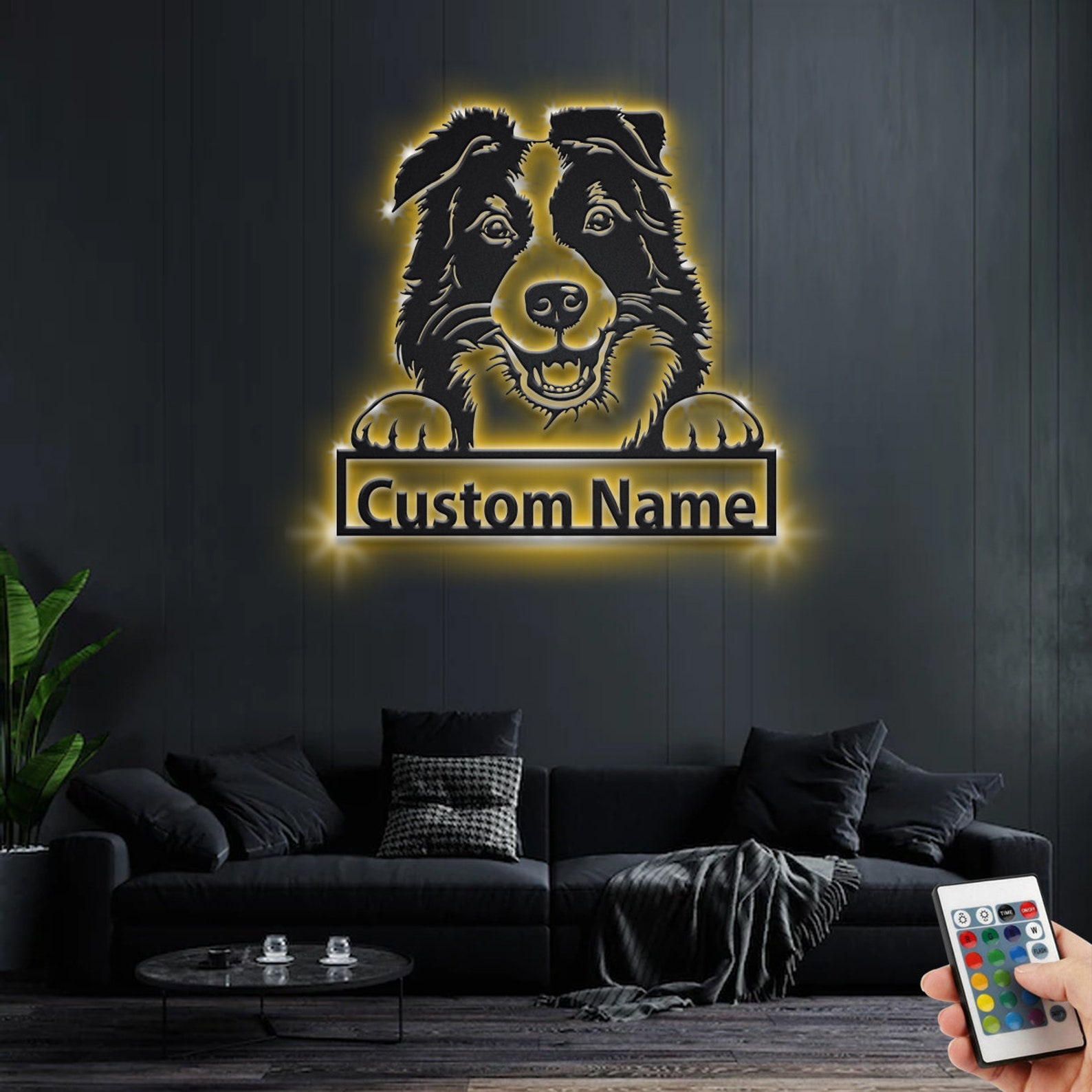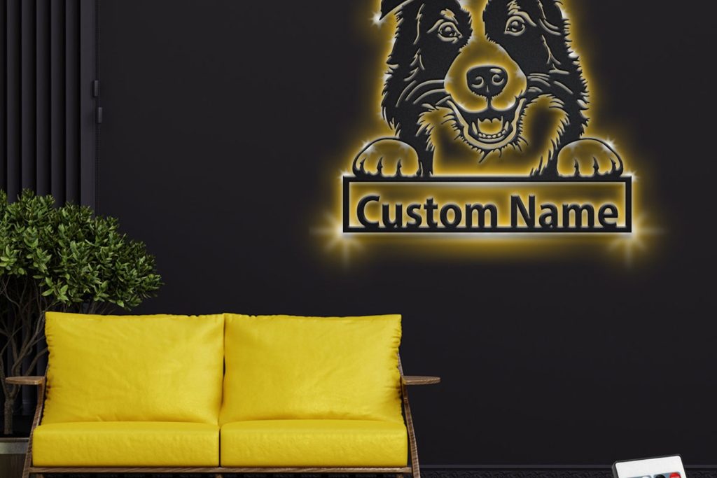 Custom Border Collie Metal Sign with LED – Dog Room Decor