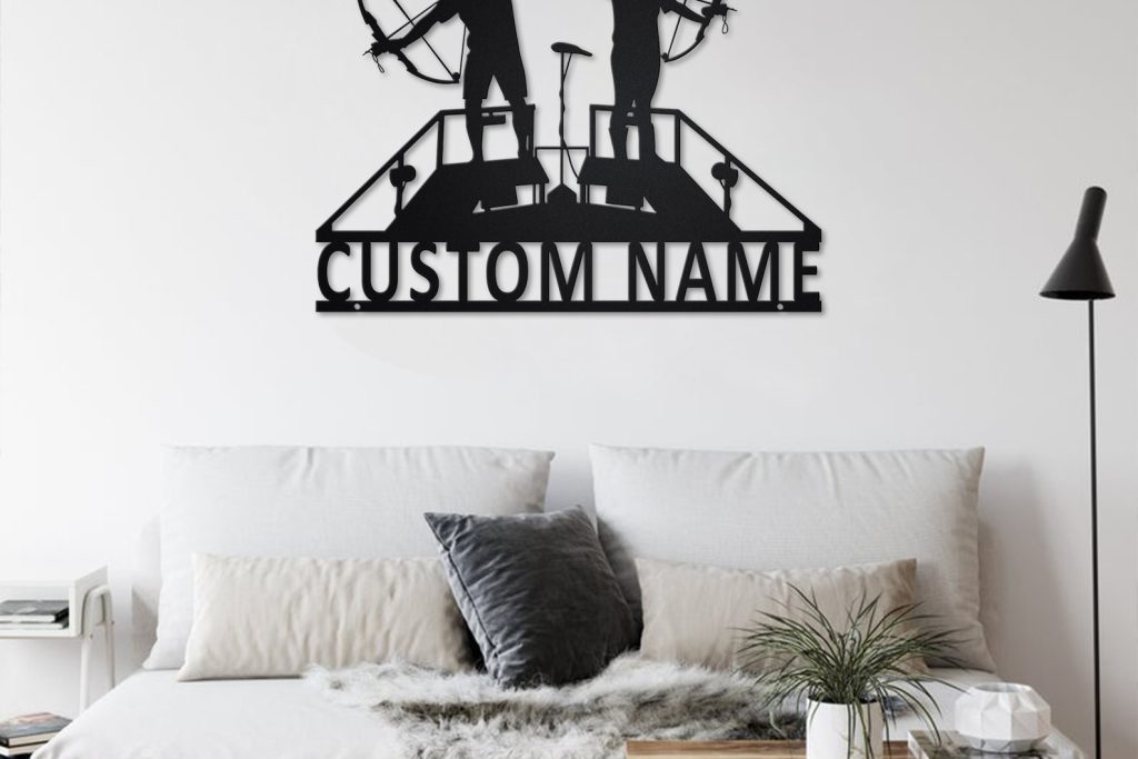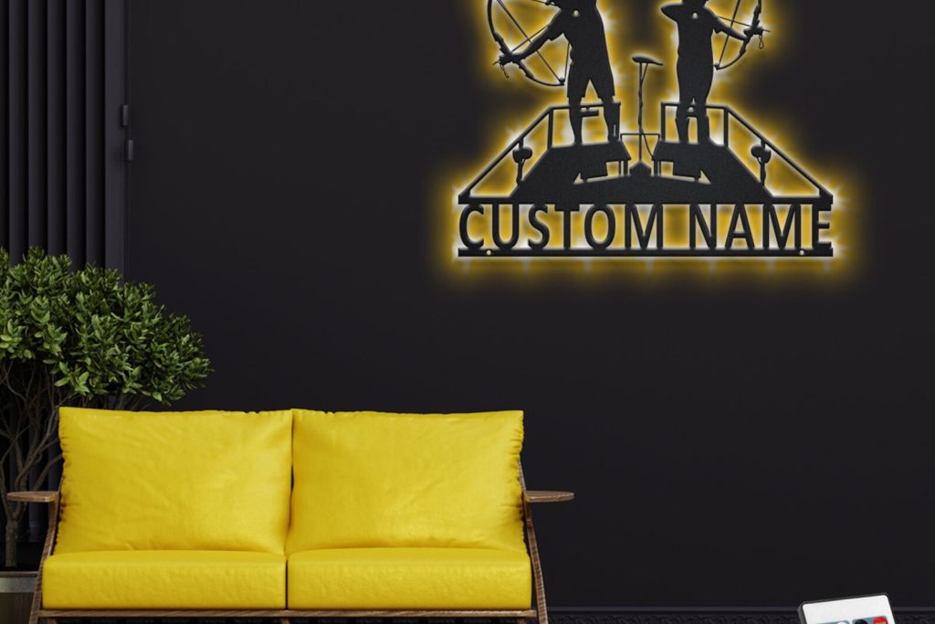 Custom Bowfishing Couple Metal Sign with LED – Room Decoration