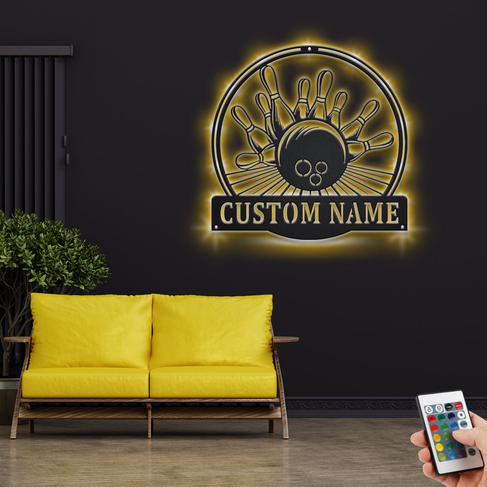 Custom Bowling Metal Sign with LED – Player Room Decor