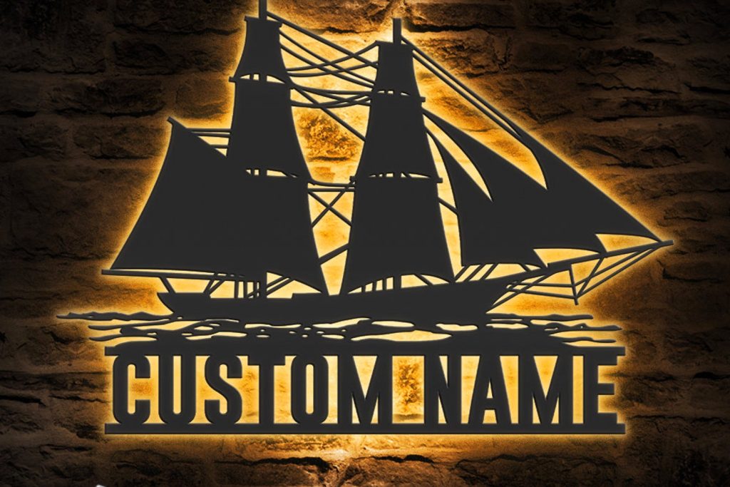 Be the first to review “Custom Brig Sailing Metal Art with LED Light”