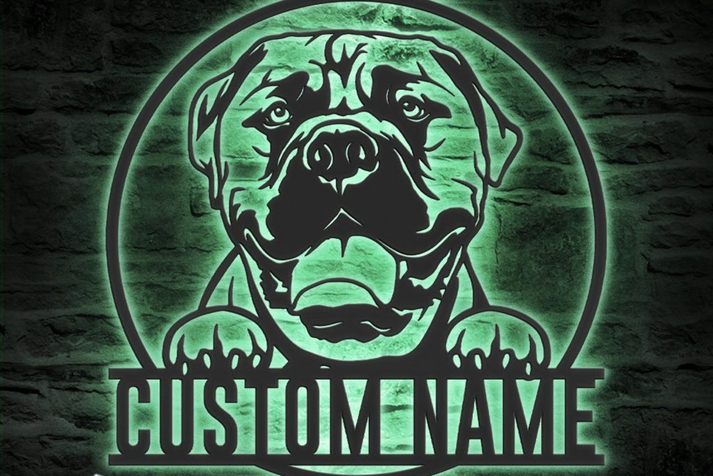 Be the first to review “Custom Bullmastiff LED Metal Art – Dog Lover Name Sign”