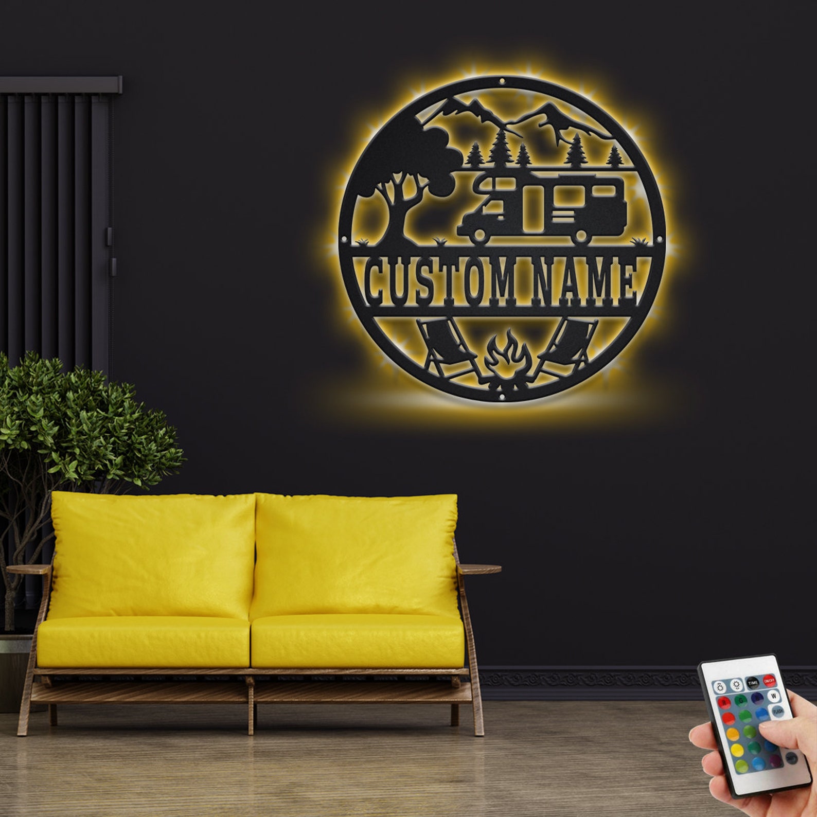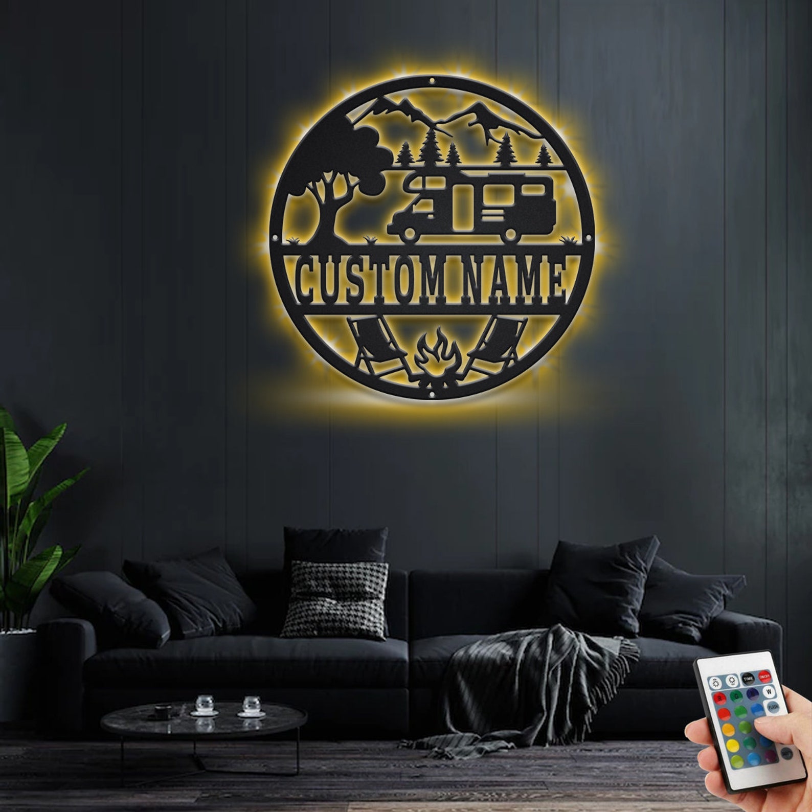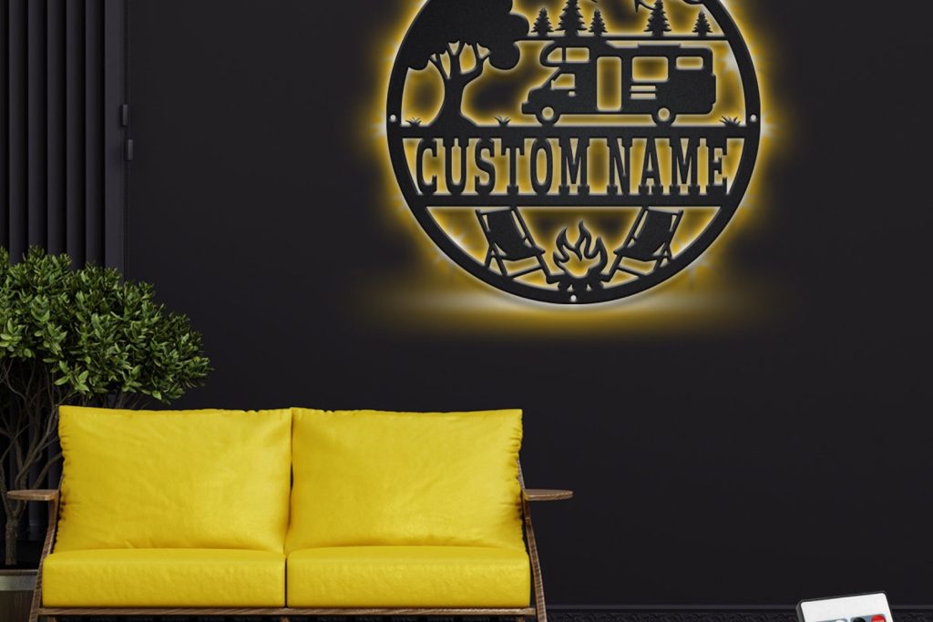 Custom Campervan Metal Wall Art – LED Light, Personalized