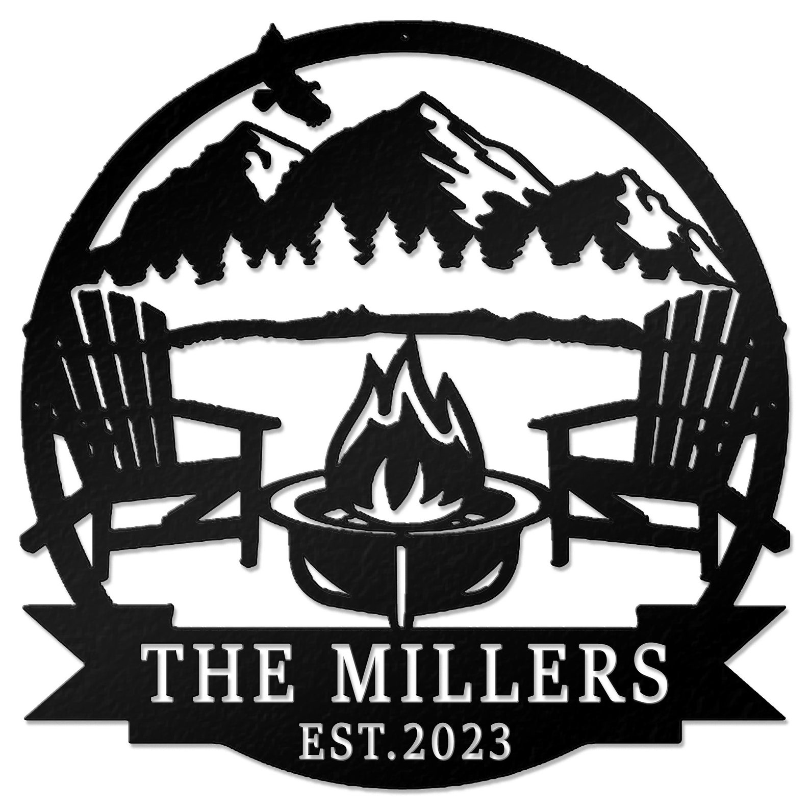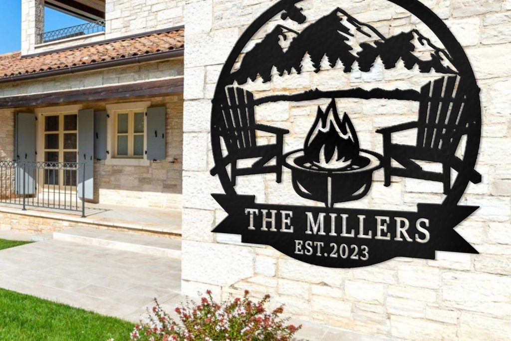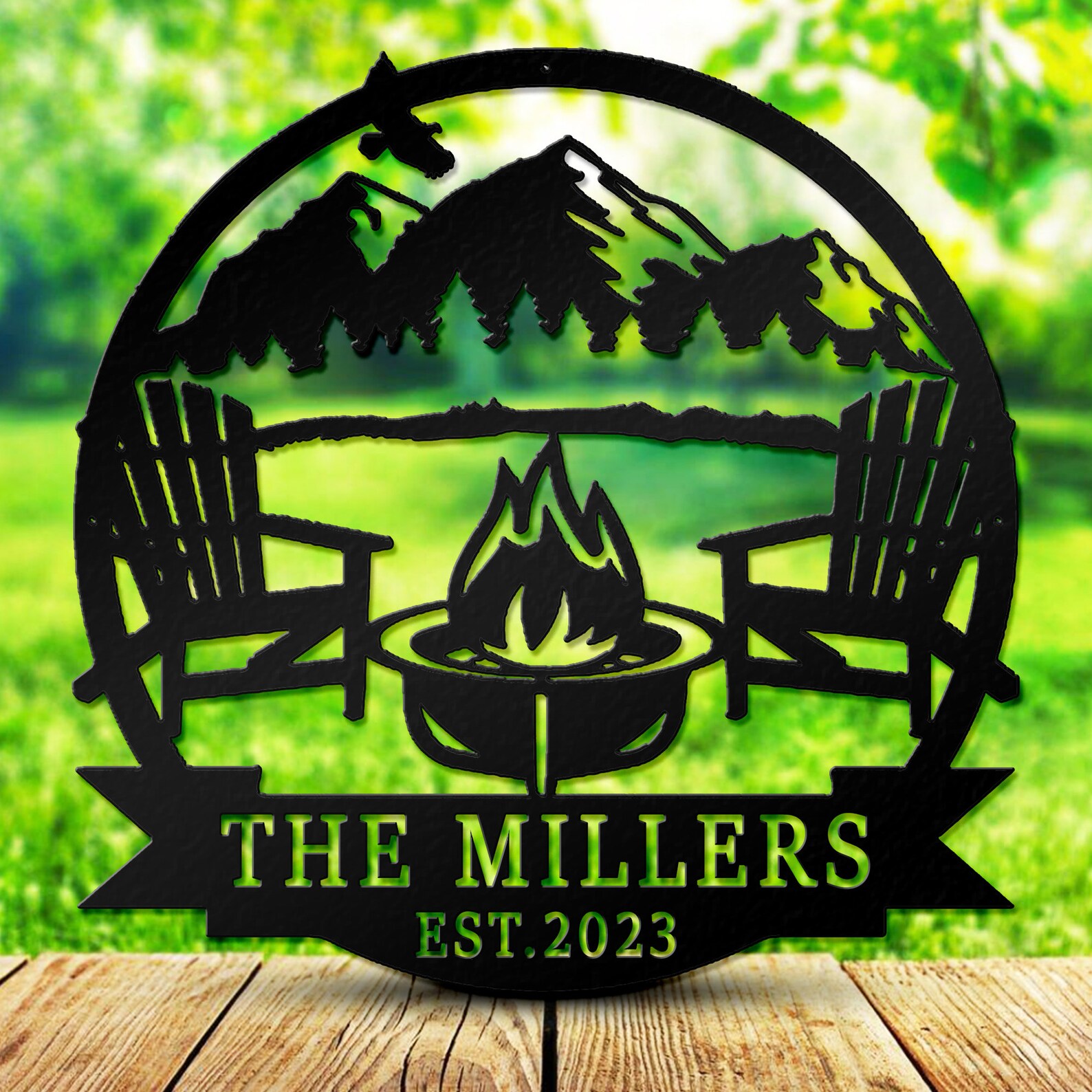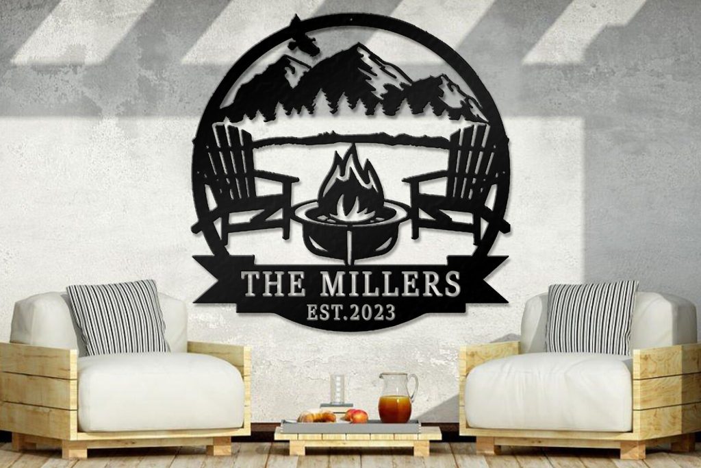Custom Campfire Place Decor: Mountain Scene Sign