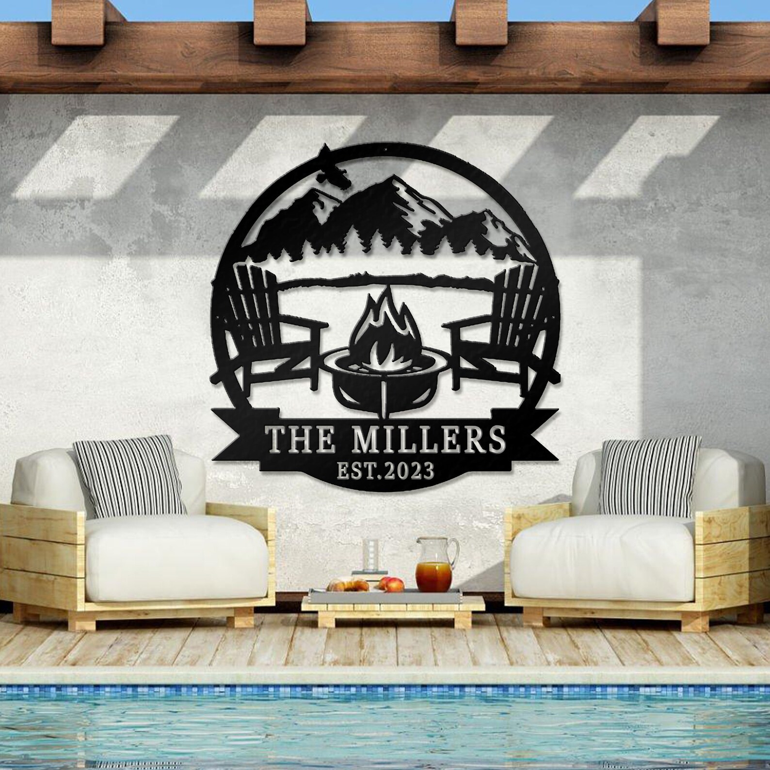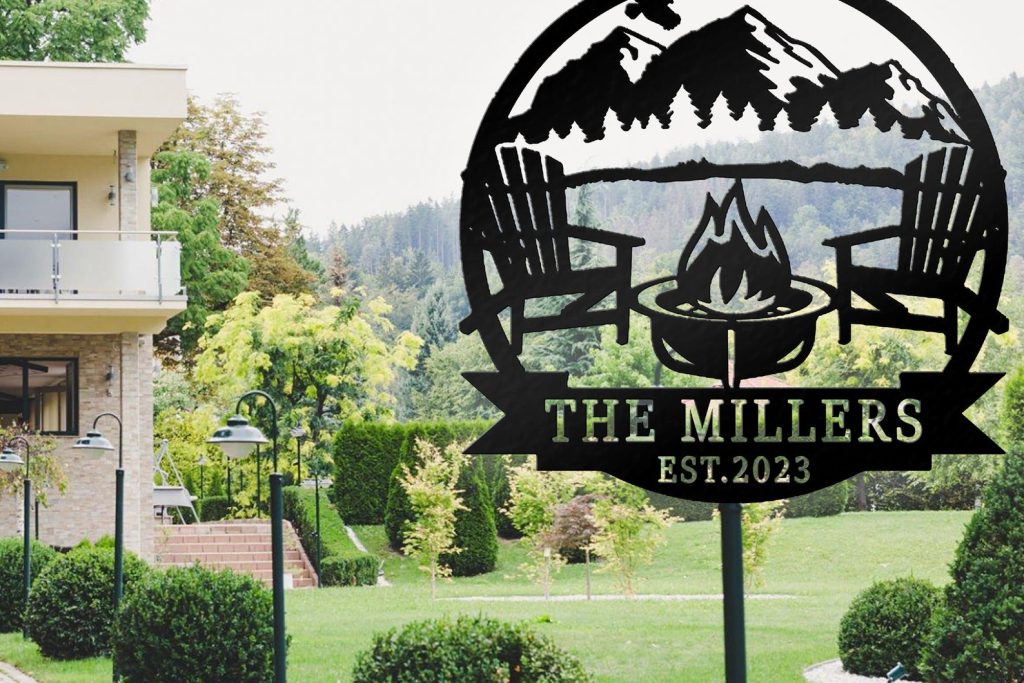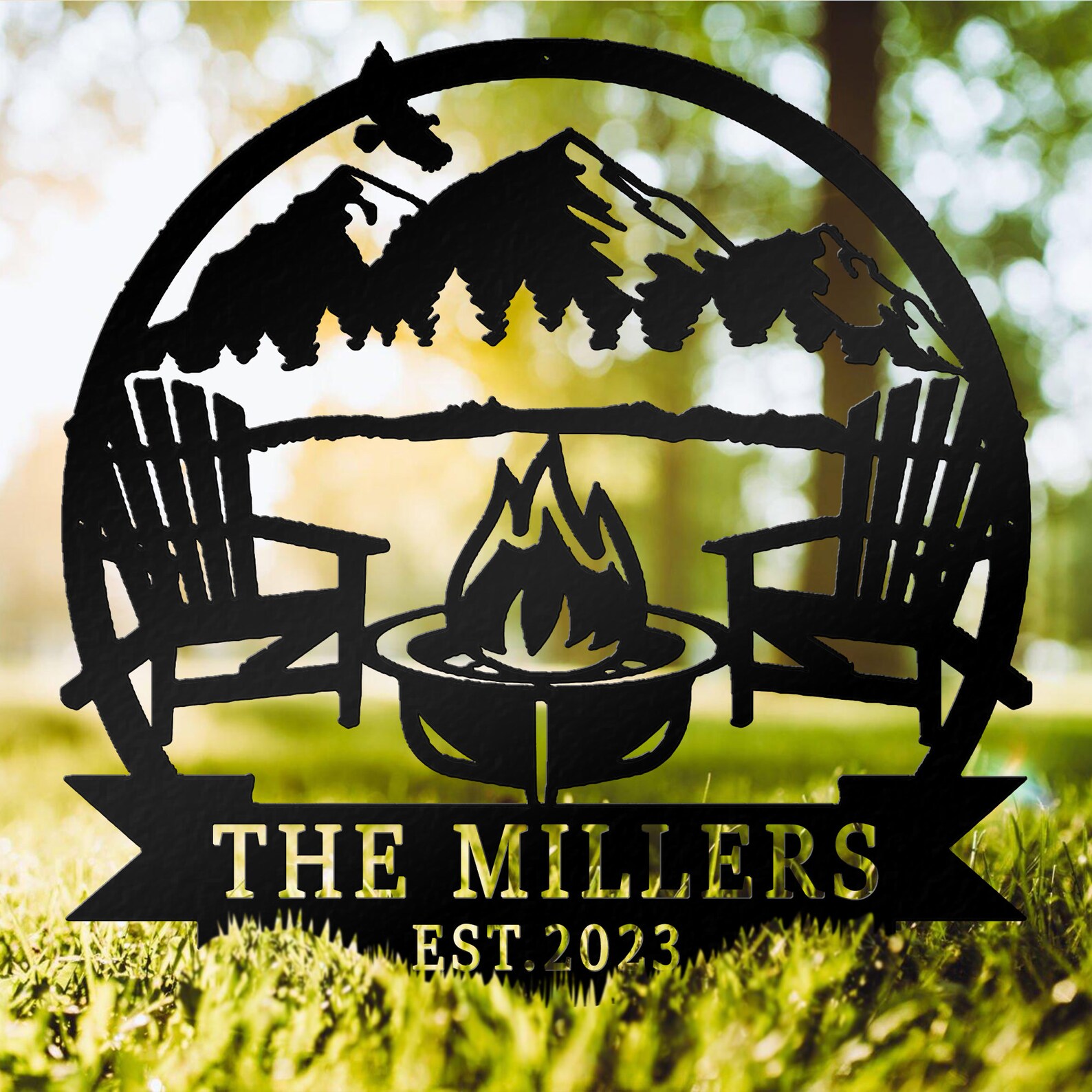Custom Campfire Place Decor: Mountain Scene Sign