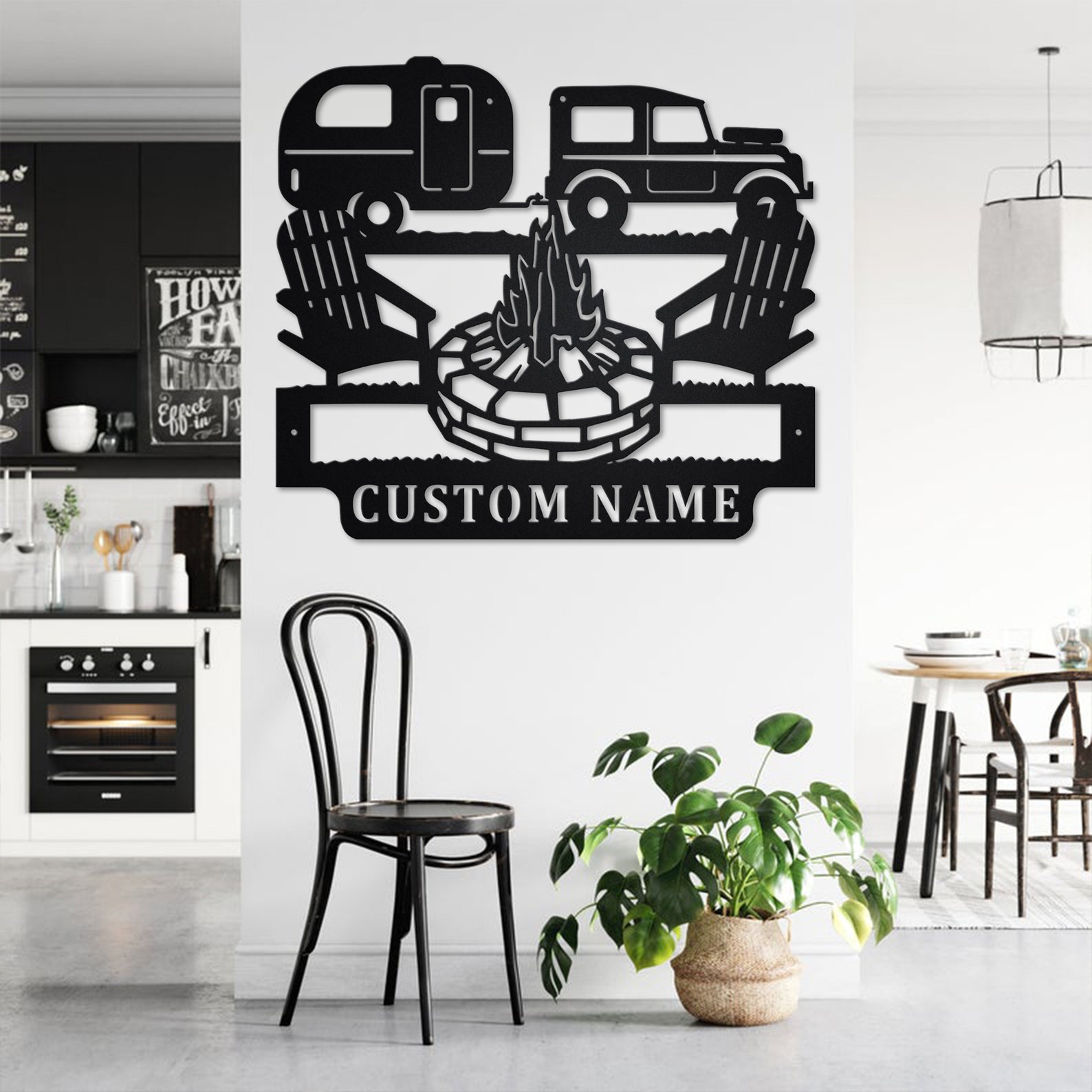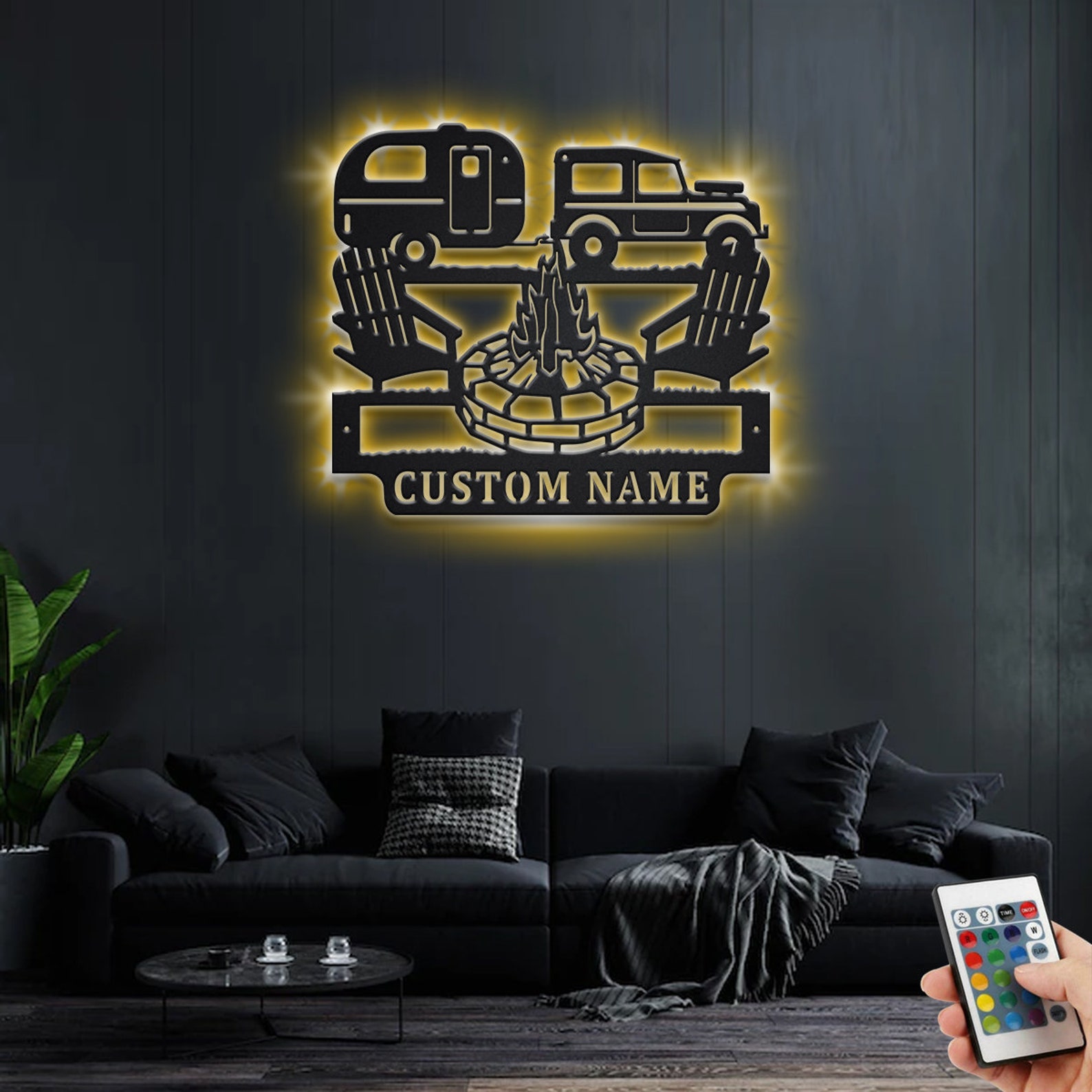 Custom Camping Car Metal Wall Art – LED Light, Personalized