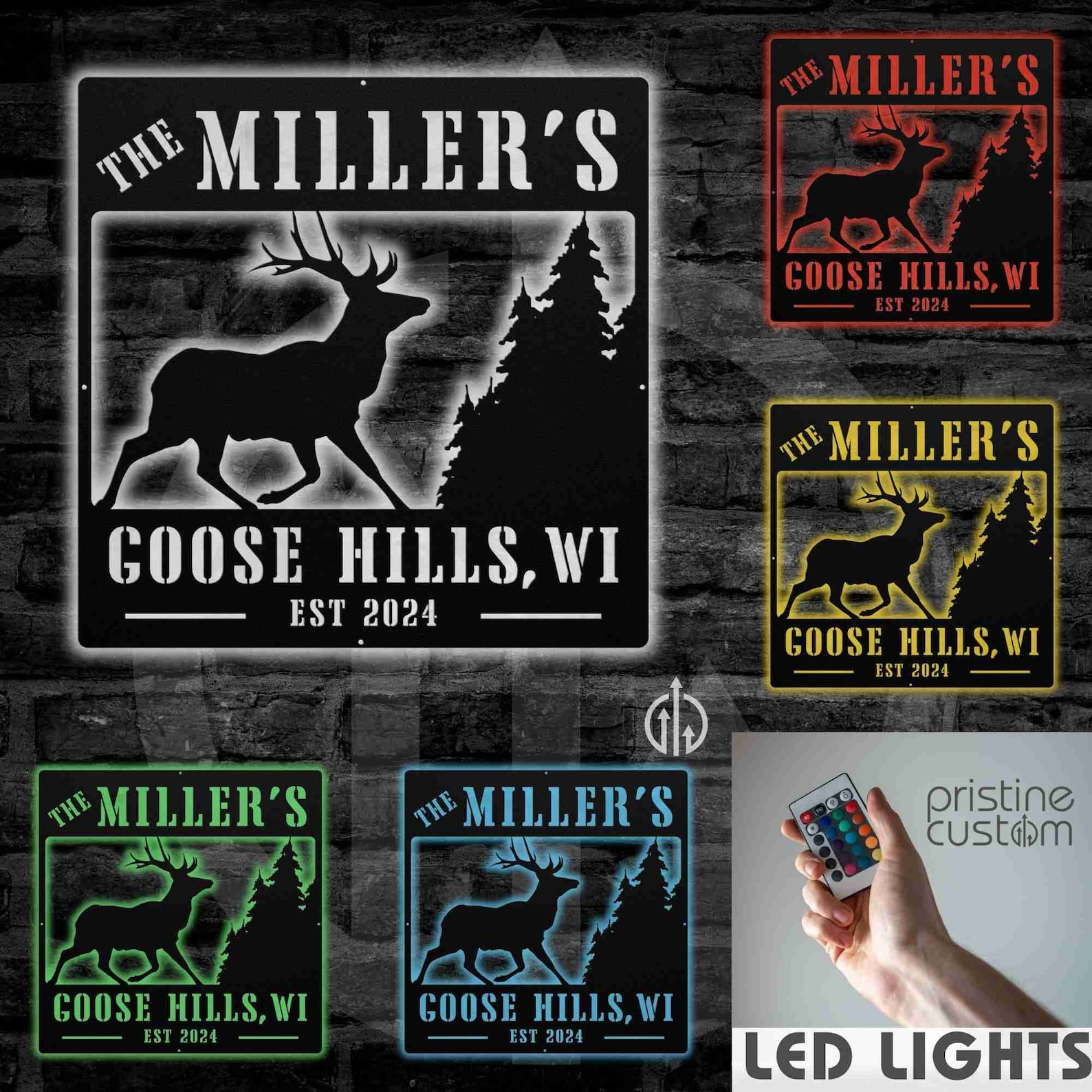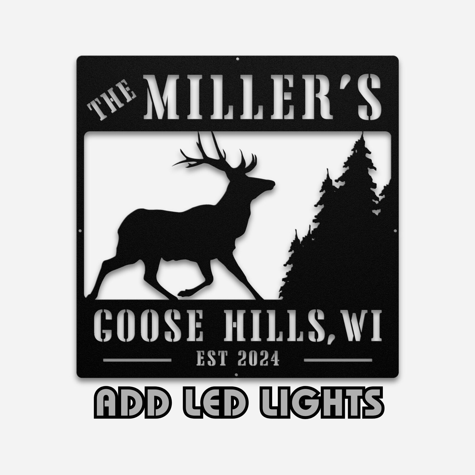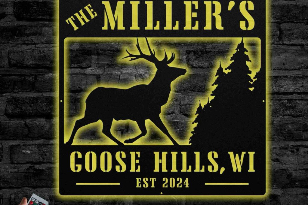 Celebrate the beauty and warmth of your cabin or cottage with our Deer Elk Buck and Trees Custom Family Name Sign. Handcrafted with skilled craftsmanship, this sign features a stunning design of deer, elk, bucks, and trees, making it a perfect addition to your rustic home. Personalize it with your family name for a unique touch.