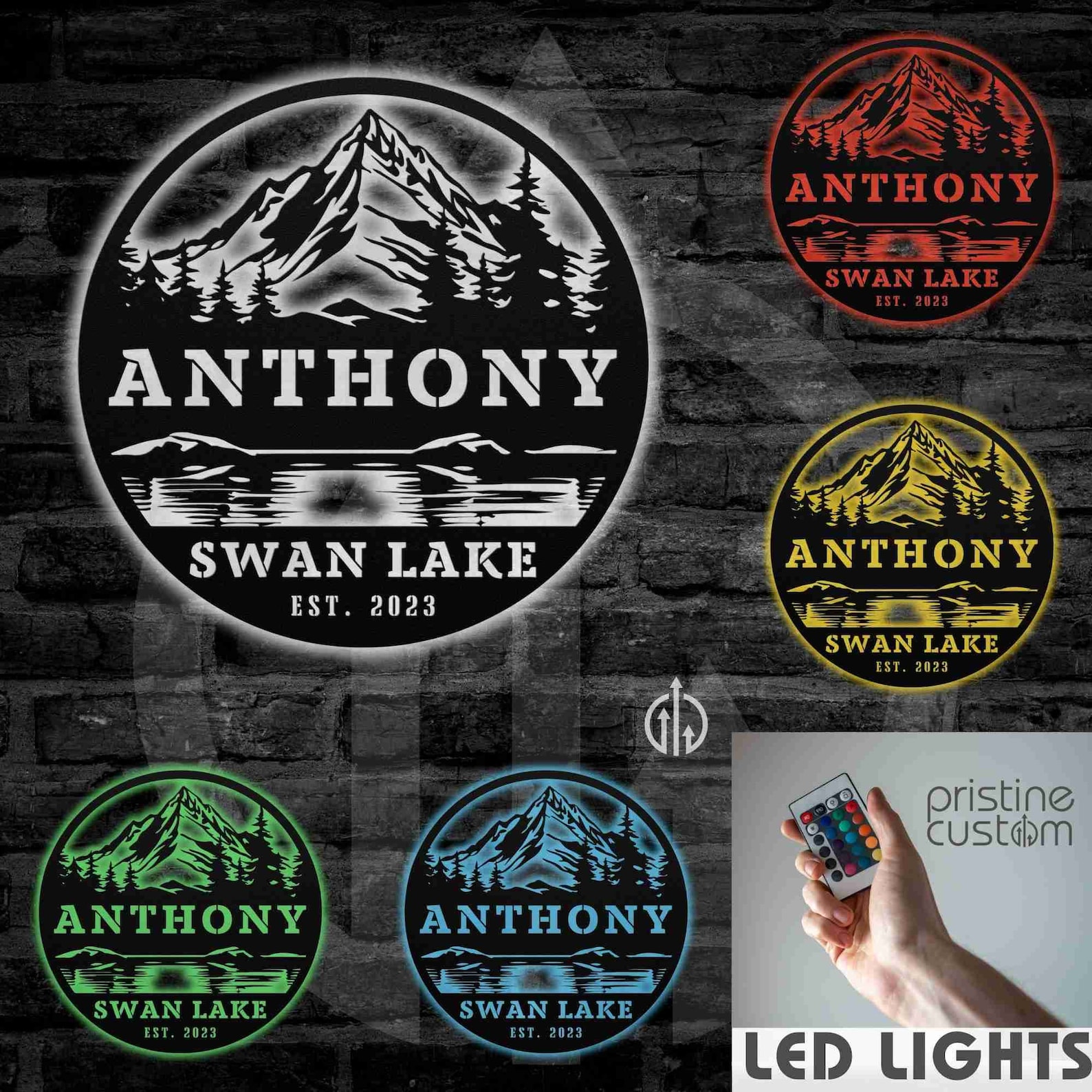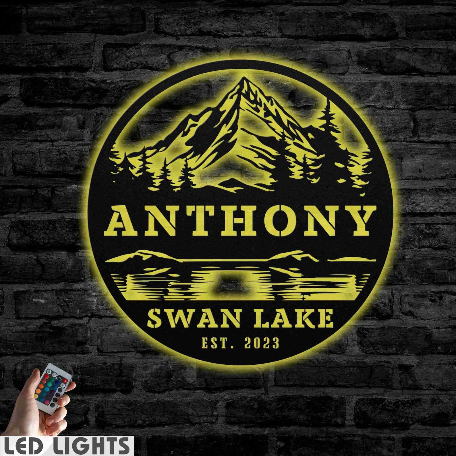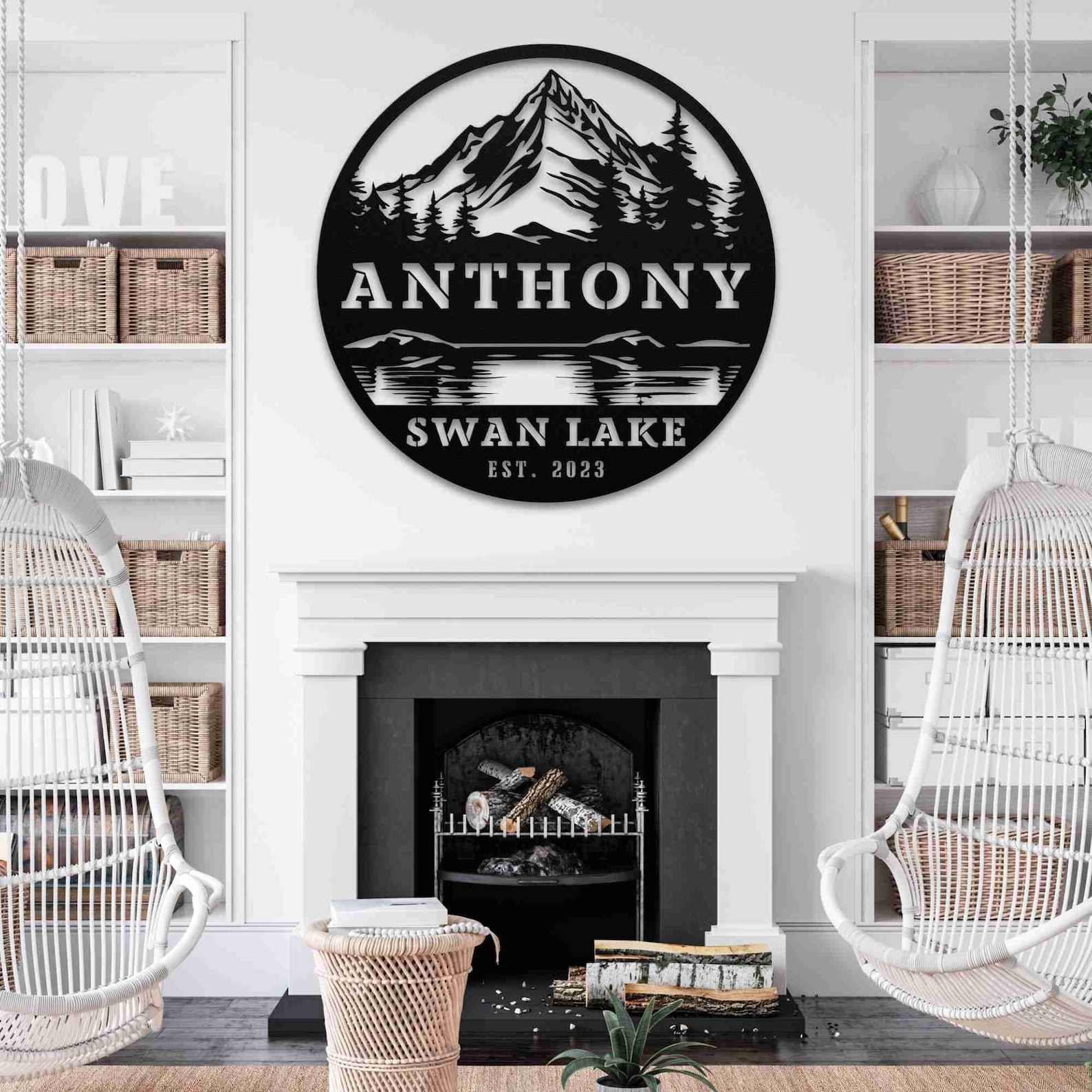 Handcrafted with expert craftsmanship, our Lake with Trees and Mountains Round Custom Family Name Sign features a serene lake nestled among towering trees and majestic mountains. Showcase your family name and add a personal touch to your home decor with this unique, beautifully designed round sign. Bring nature9;s beauty into your home with this charming piece.
