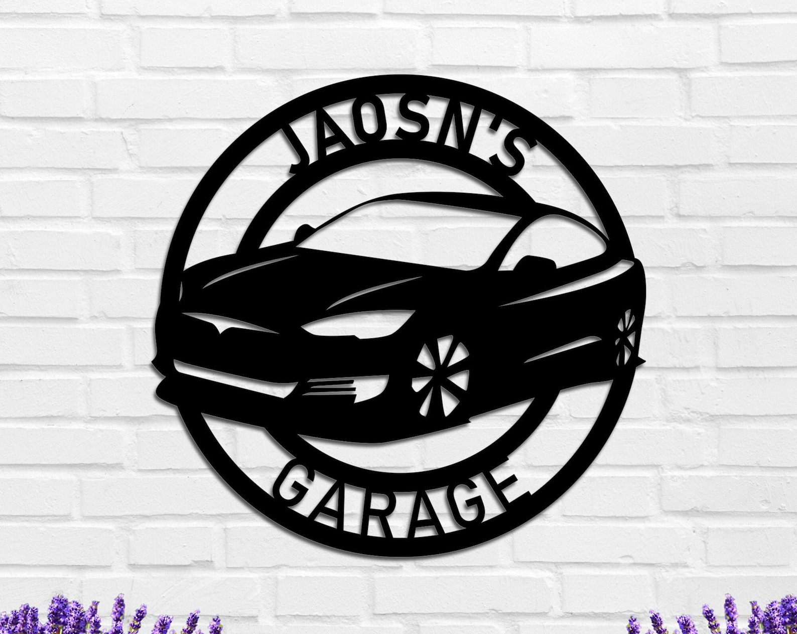 Customize your metal sign with the name, last name, initial letter and bottom text, and add information to the text box.