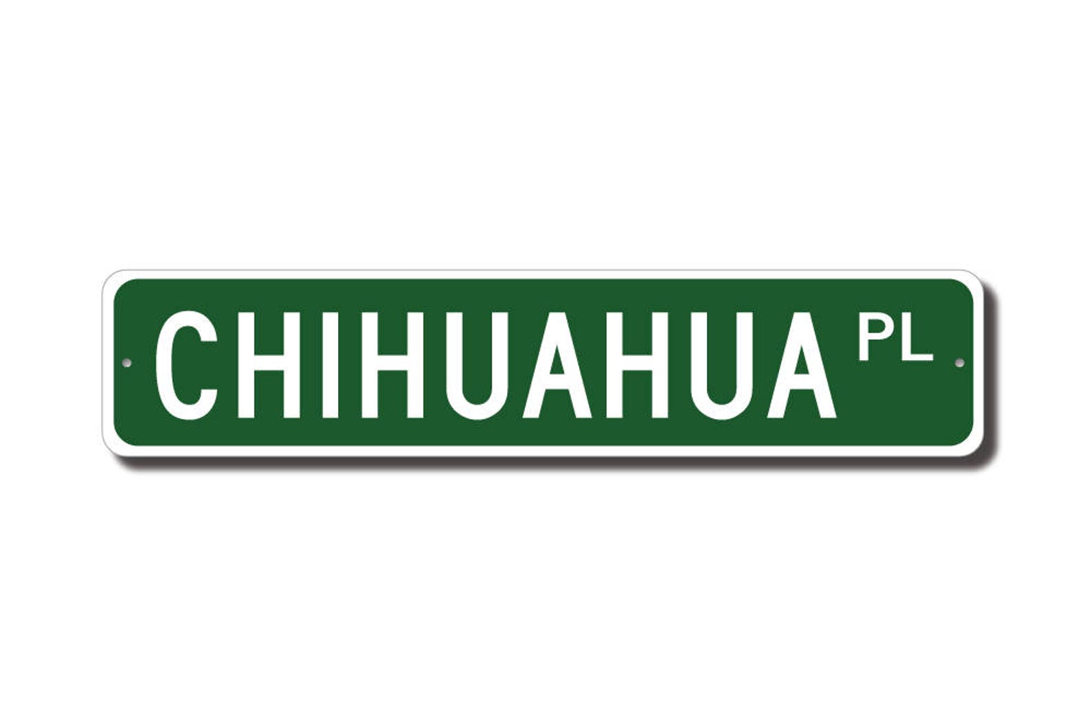 Chihuahua Lovers, check out this awesome street sign! This will make the perfect piece for any Chihuahua lover or Chihuahua cave. Made of premium aluminum it will stand the test of time. This sign will look great in any room, garage, barn or office! Get this sign for your favorite friend that loves a Chihuahua !
