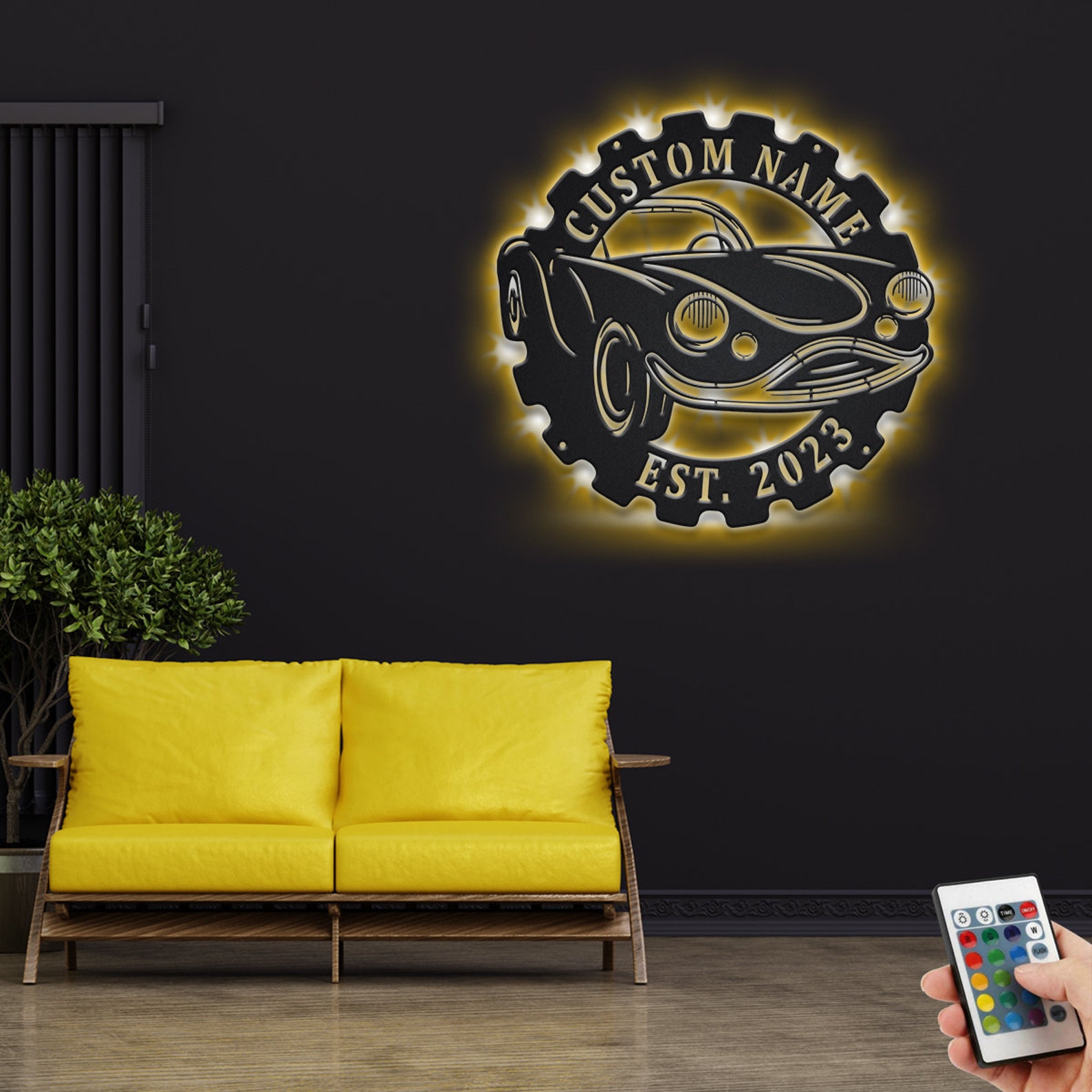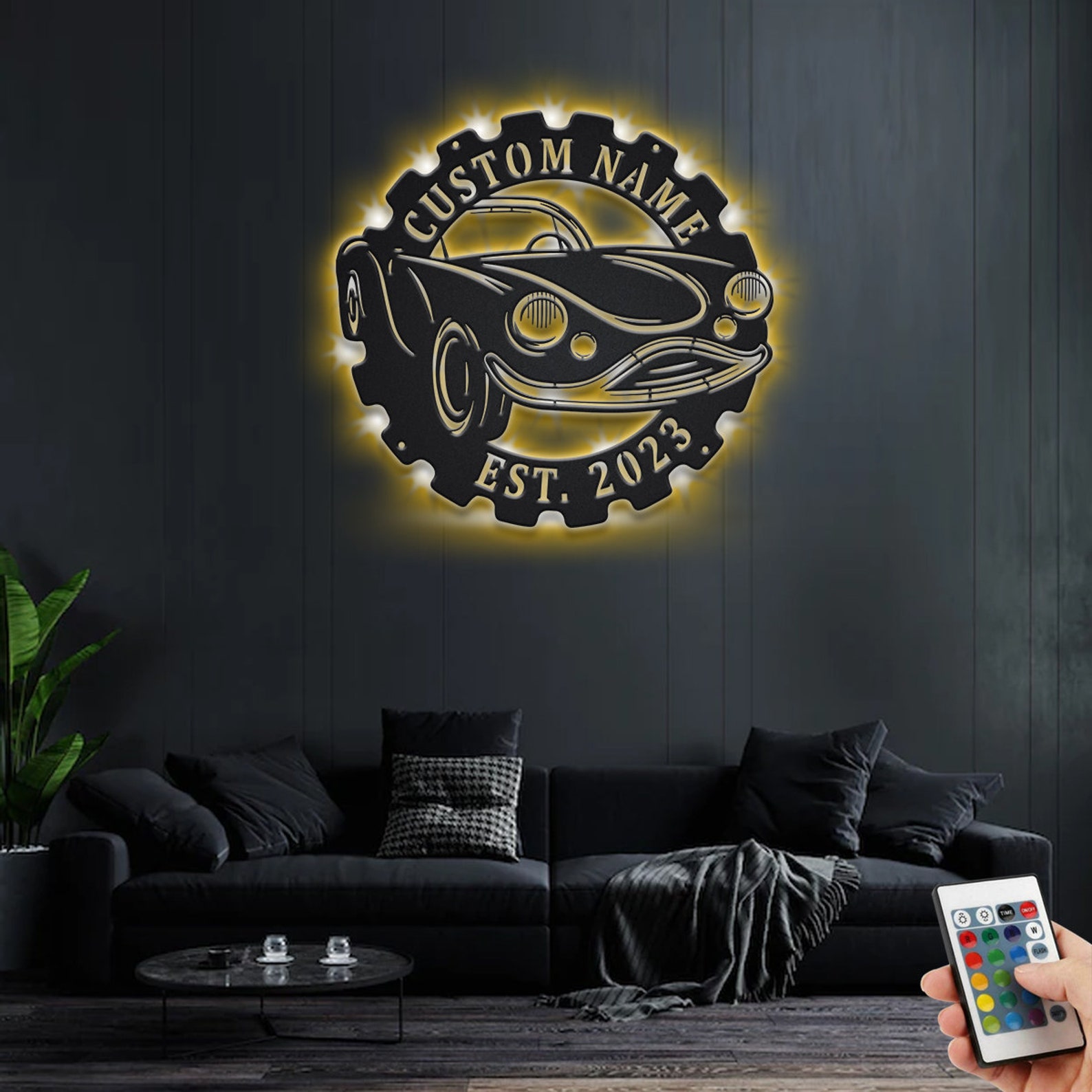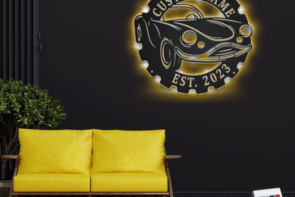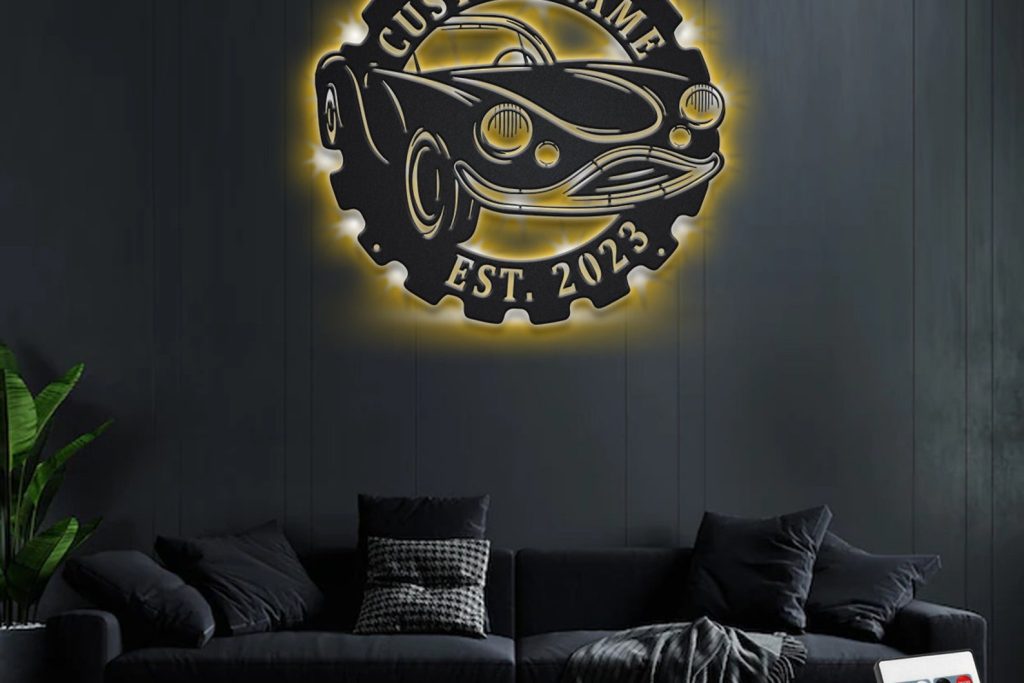 Custom Classic Car Metal Sign with LED – Garage Decoration