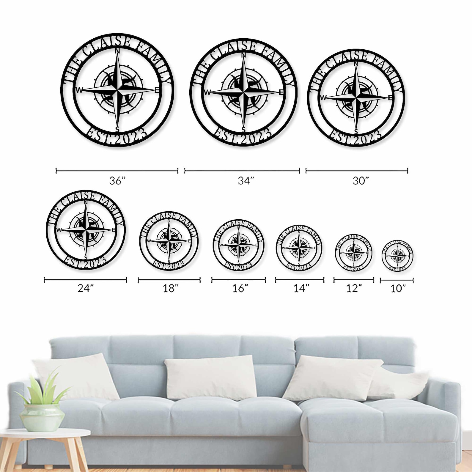 Be the first to review “Custom Compass Metal Sign for Family Name”