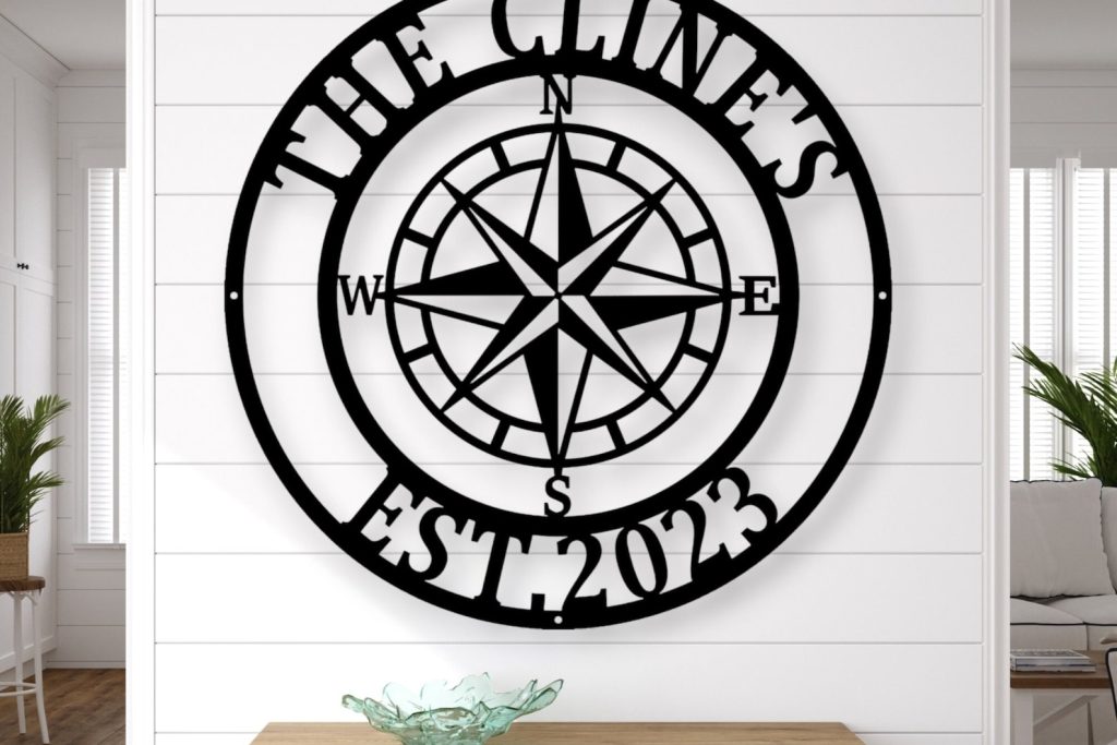Be the first to review “Custom Compass Rose Metal Sign, Nautical Coordinates Wall Art”