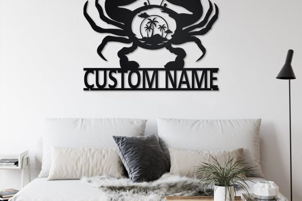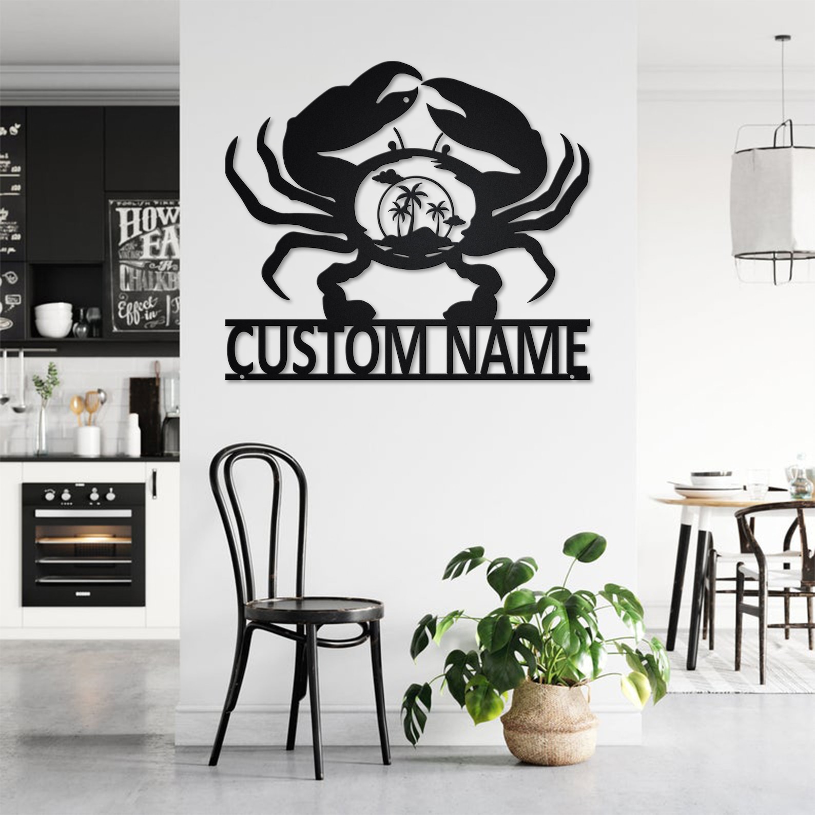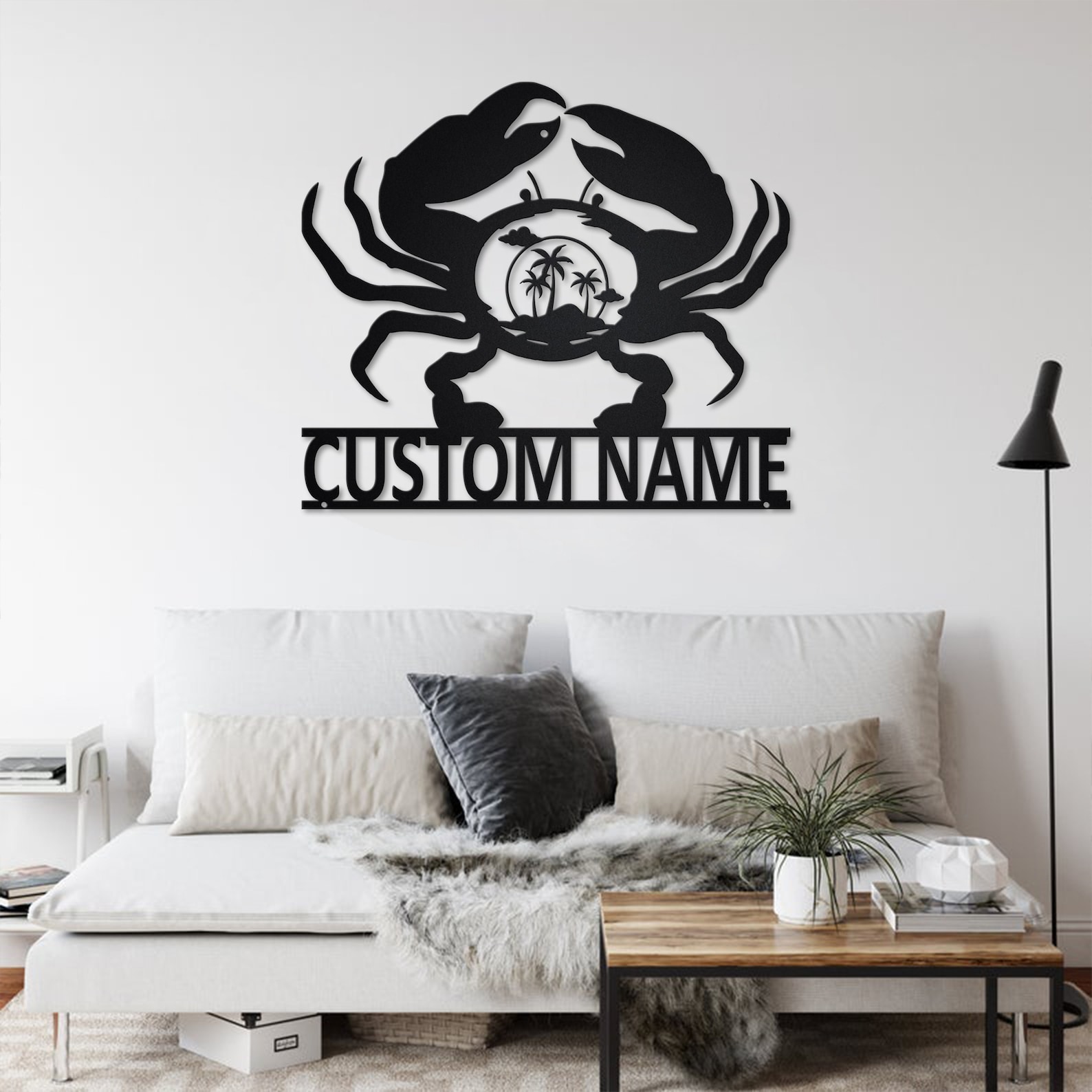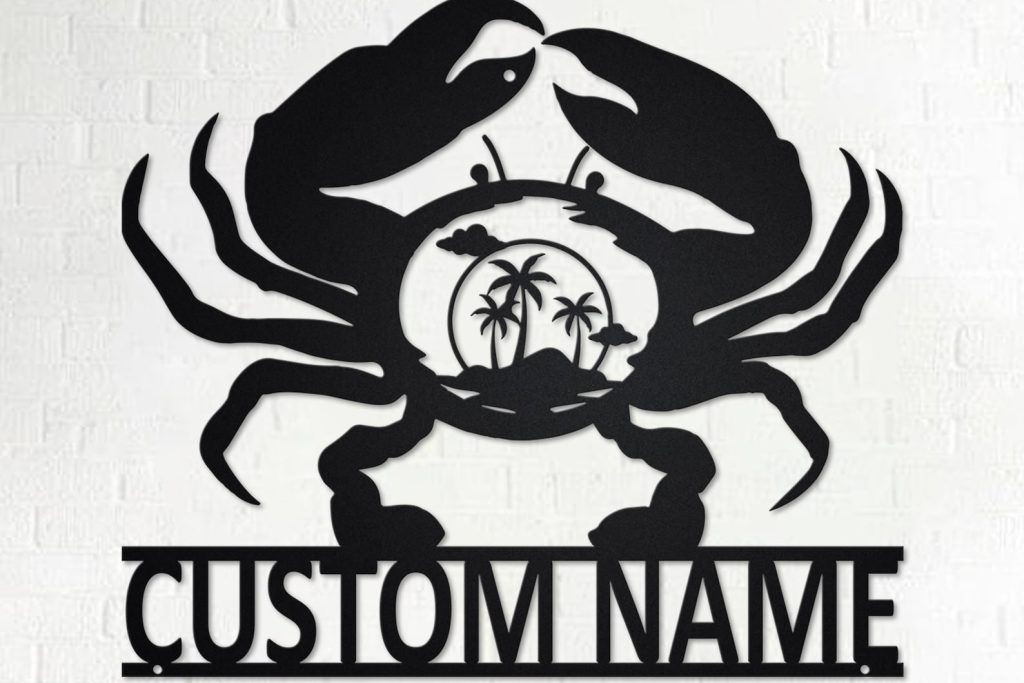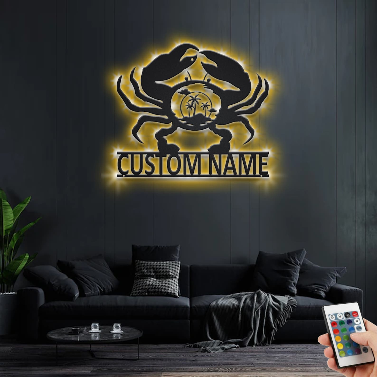 Custom Crab Beach Scene Metal Wall Art with LED Light
