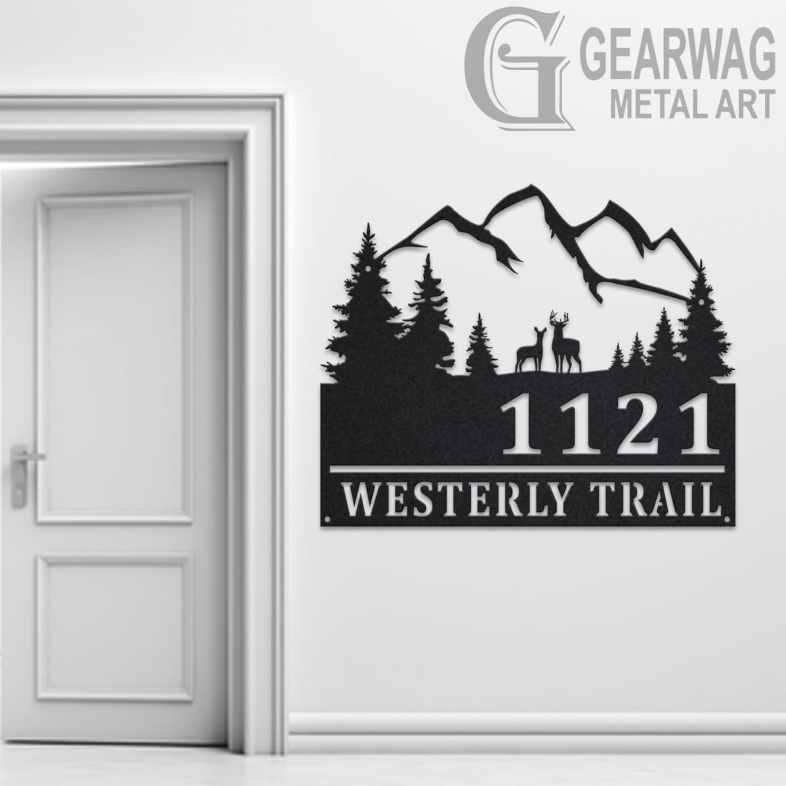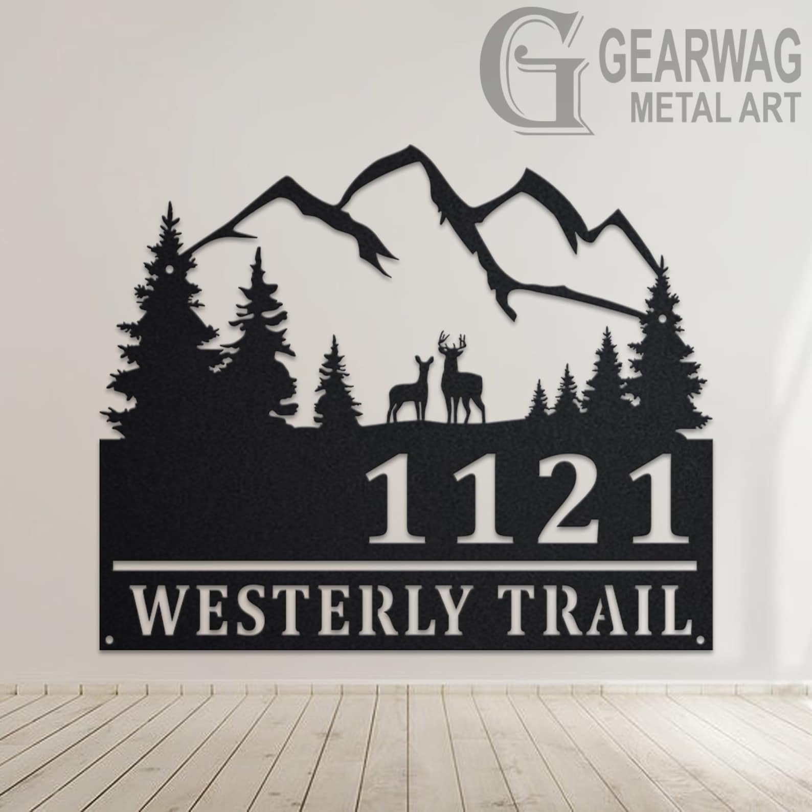 Be the first to review “Custom Deer and Mountain Metal Address Sign – Outdoor Plaque”