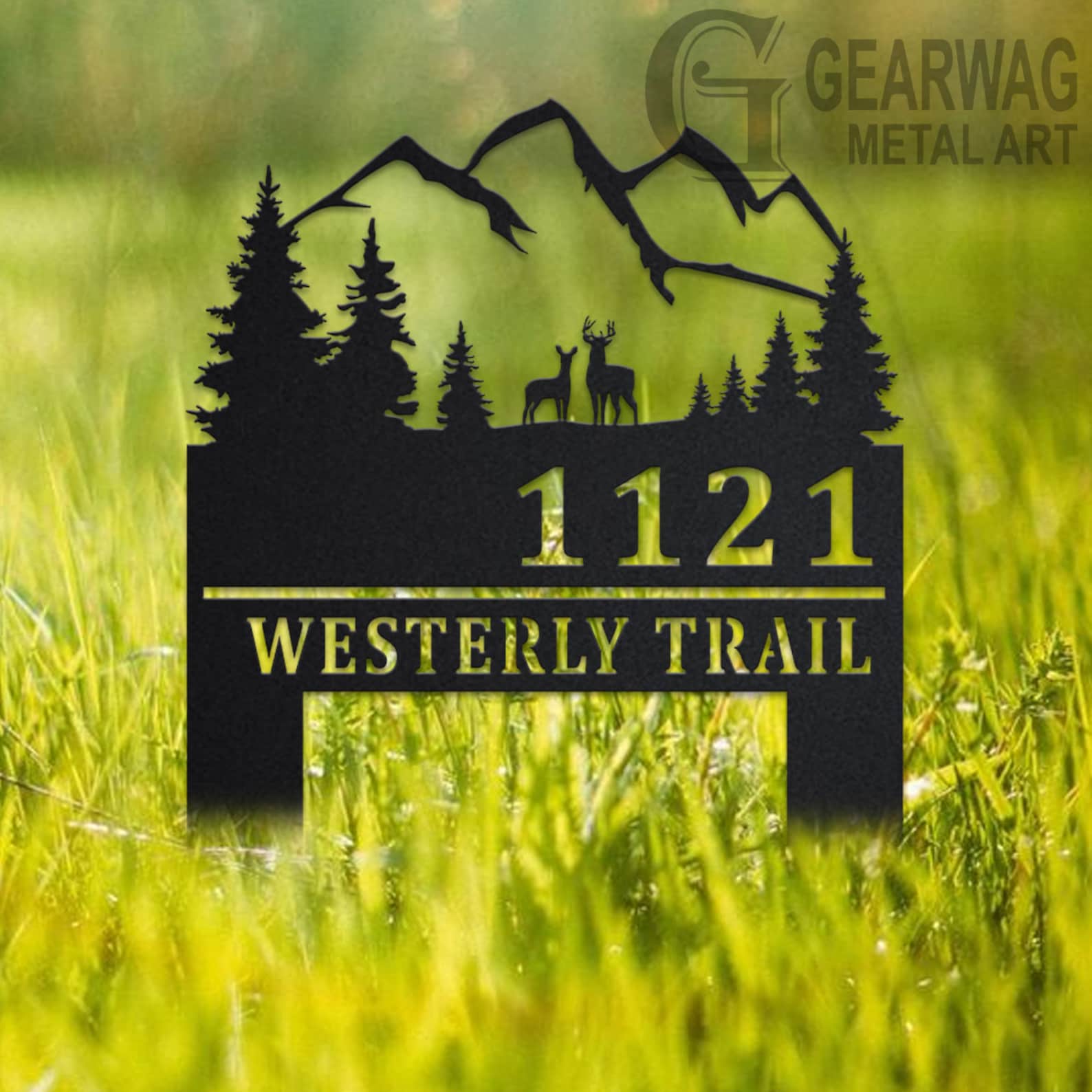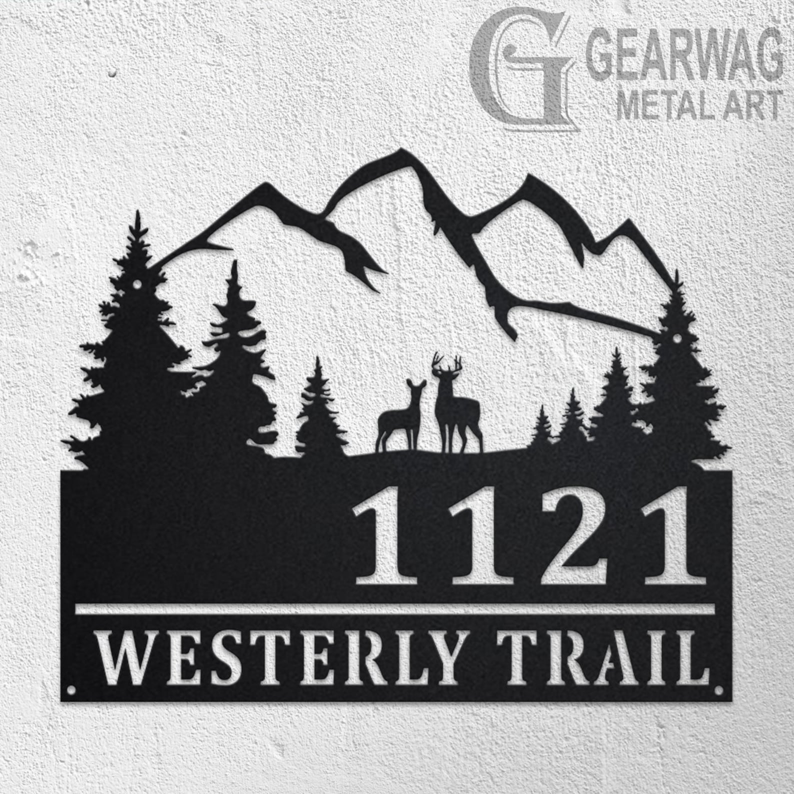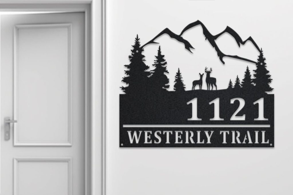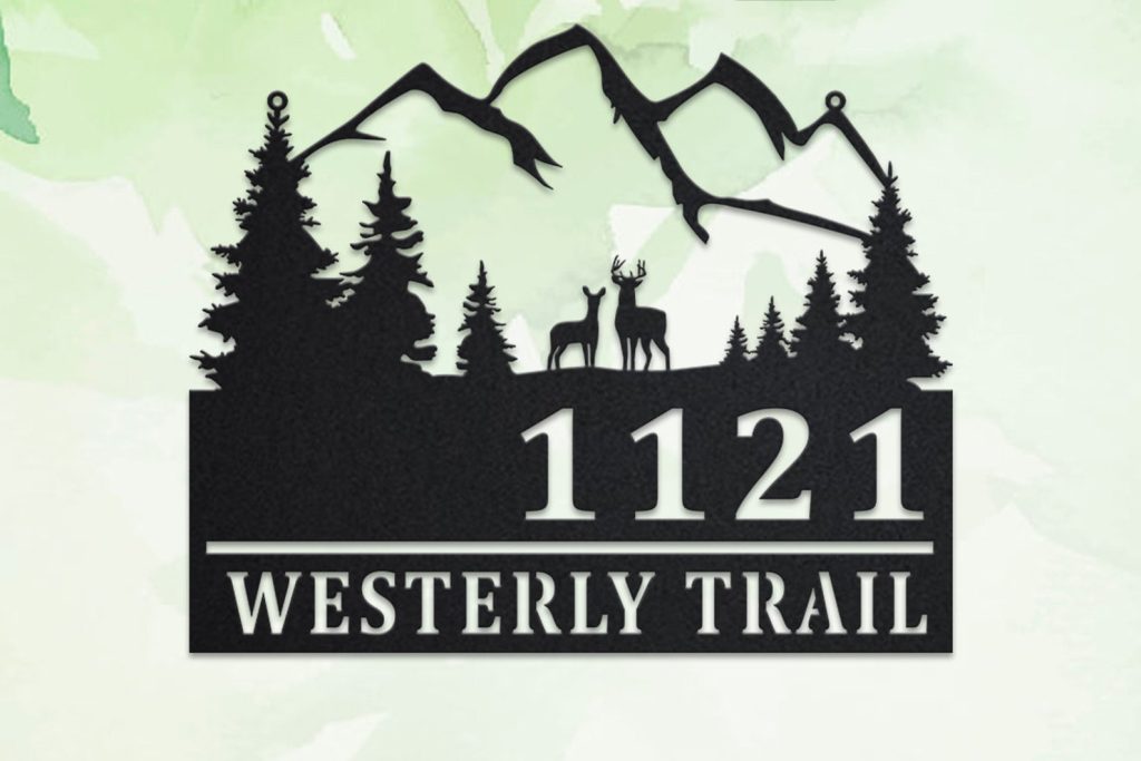 Custom Deer and Mountain Metal Address Sign – Outdoor Plaque
