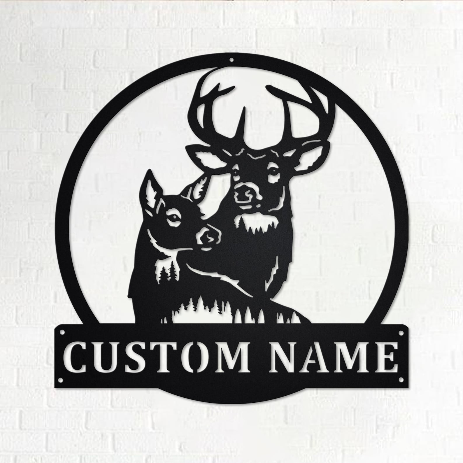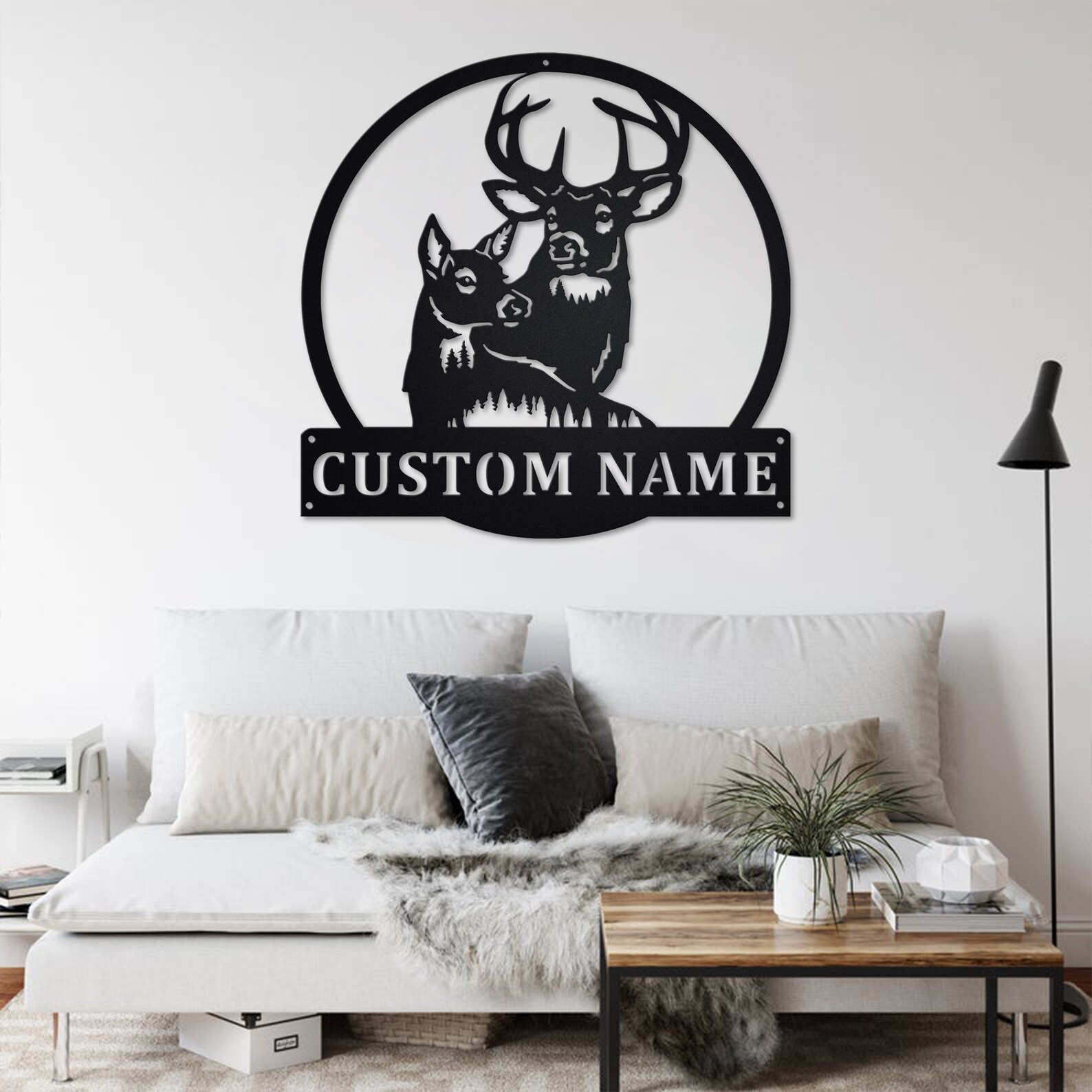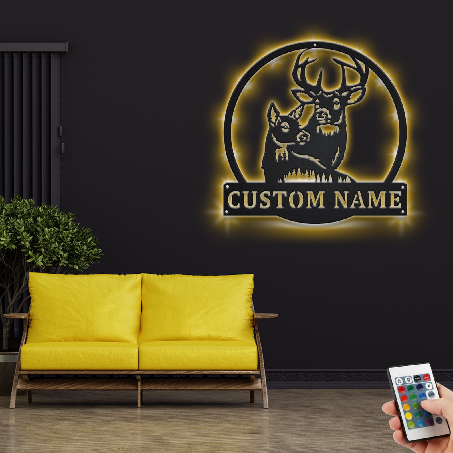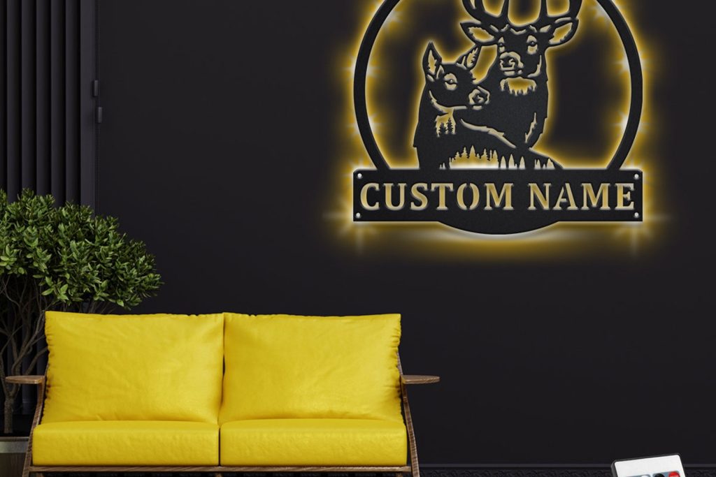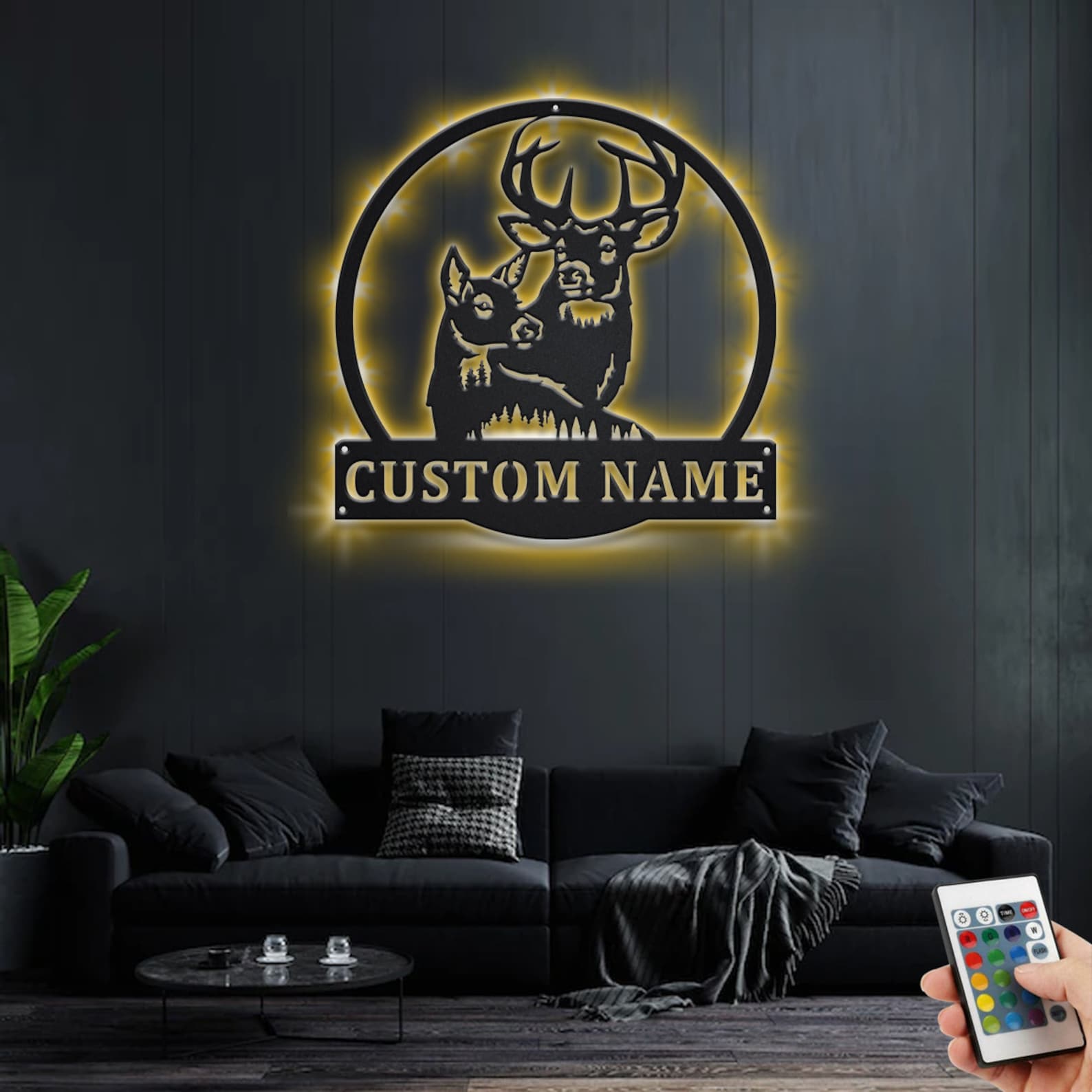 Custom Deer Couple Metal Wall Art – LED Light, Personalized Deer Hunter Sign