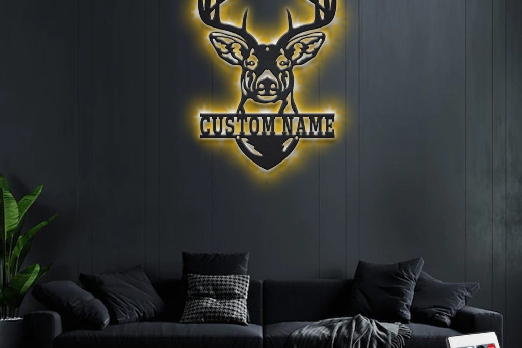 Custom Deer Head Metal Sign with LED – Hunting Decor