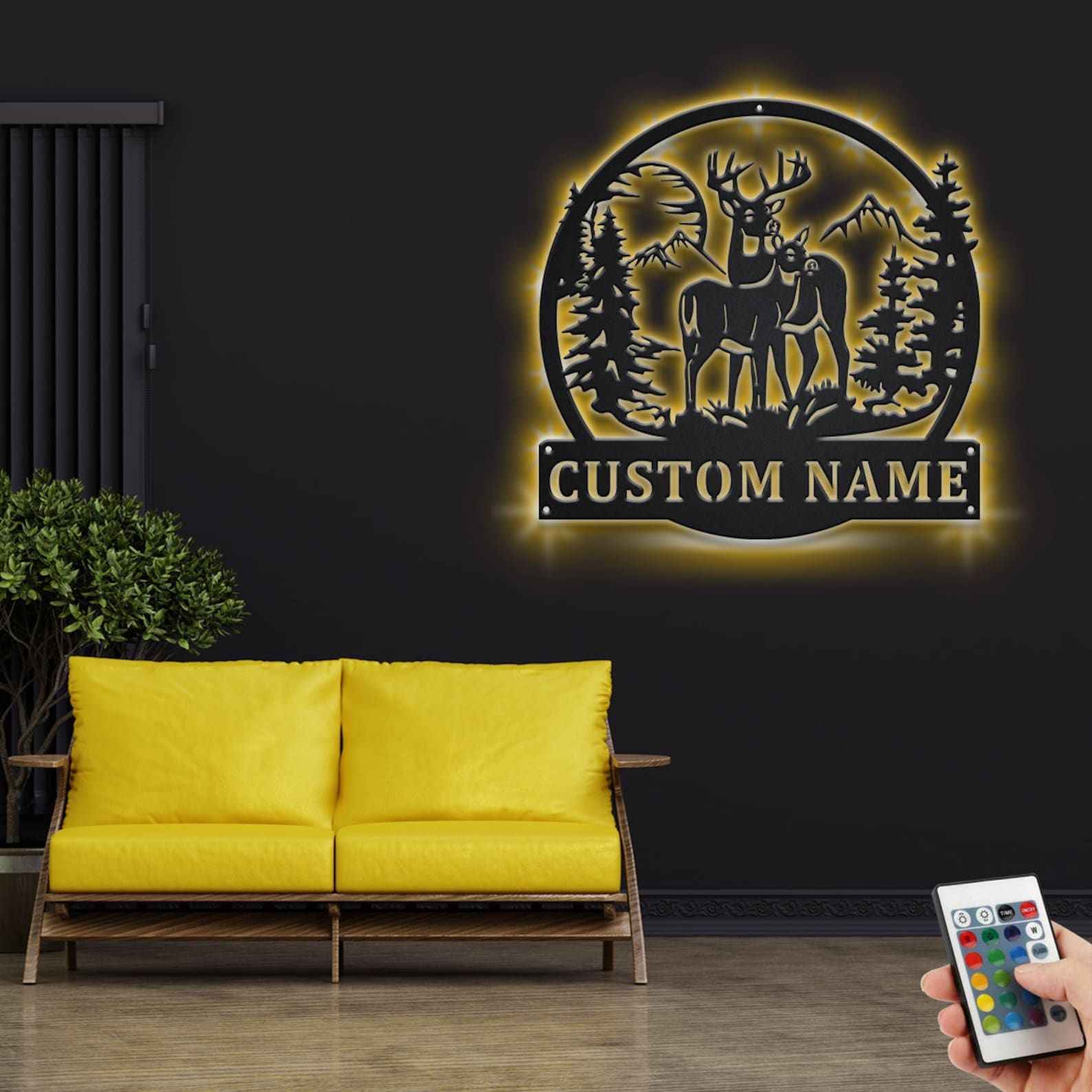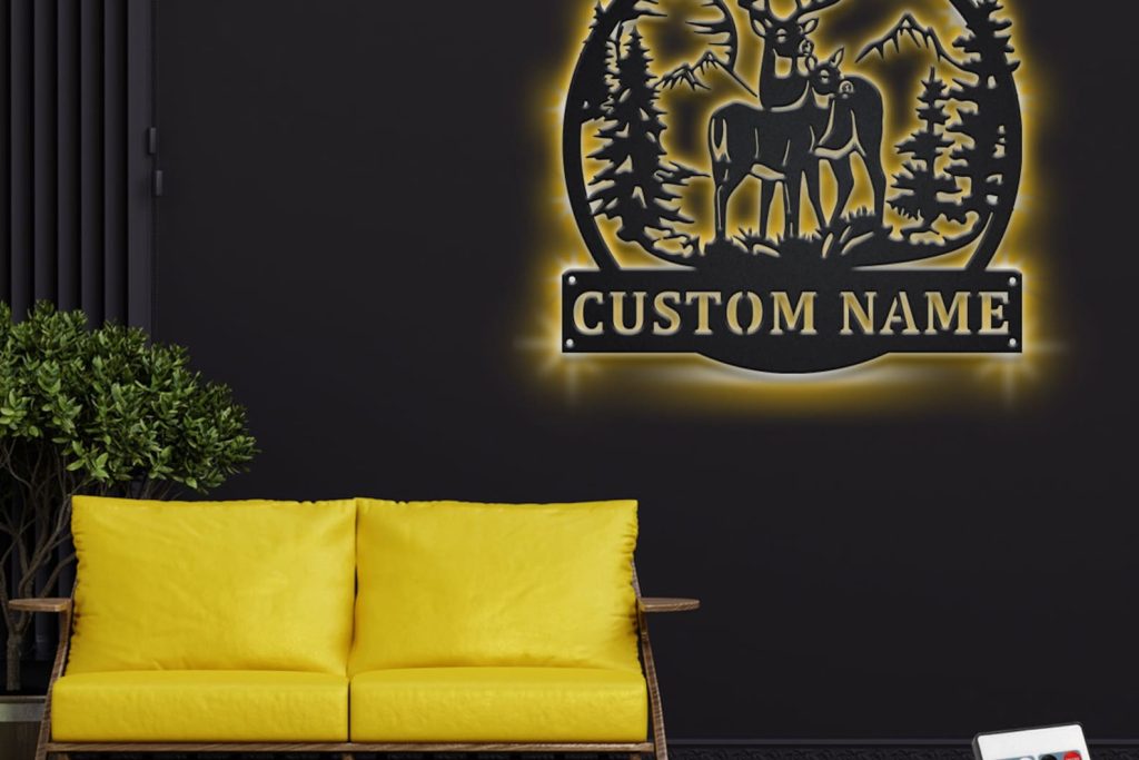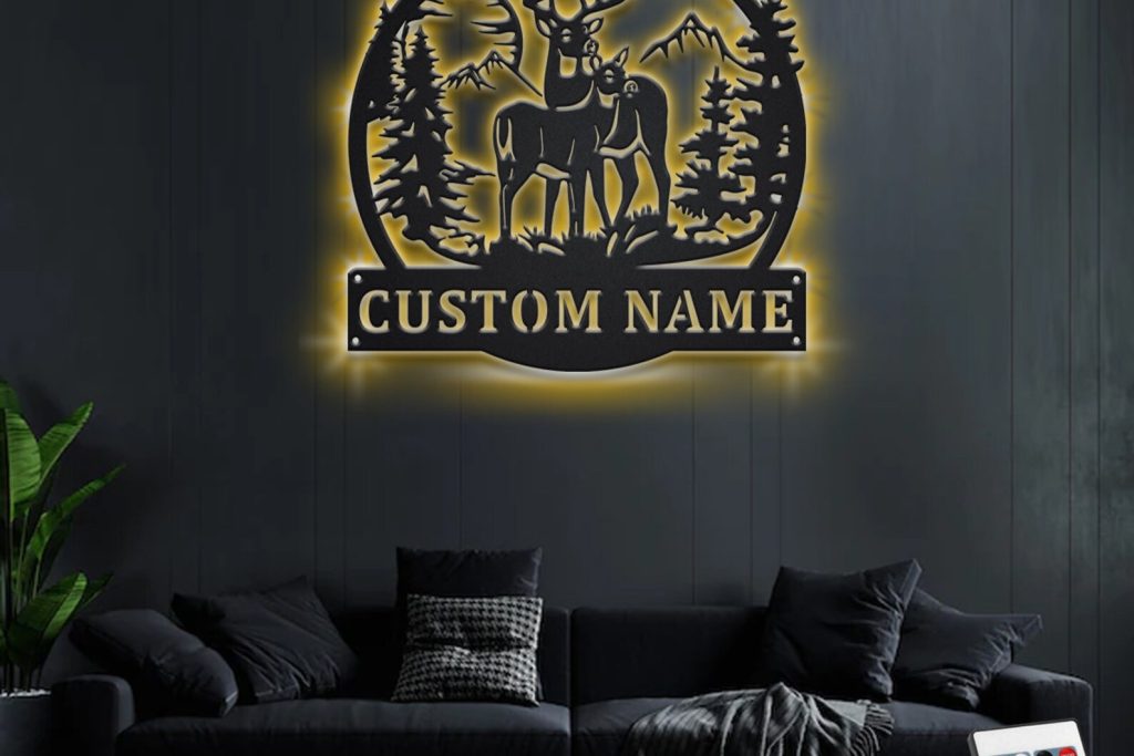 Custom Deer & Mountain Metal Sign with LED – Hunter Decor