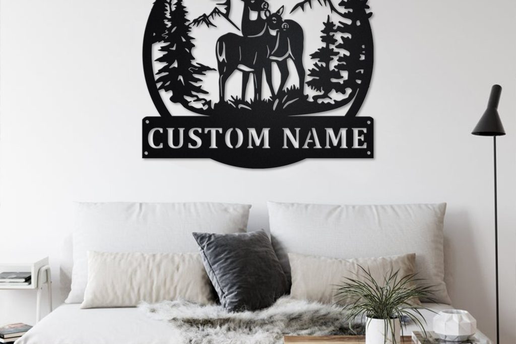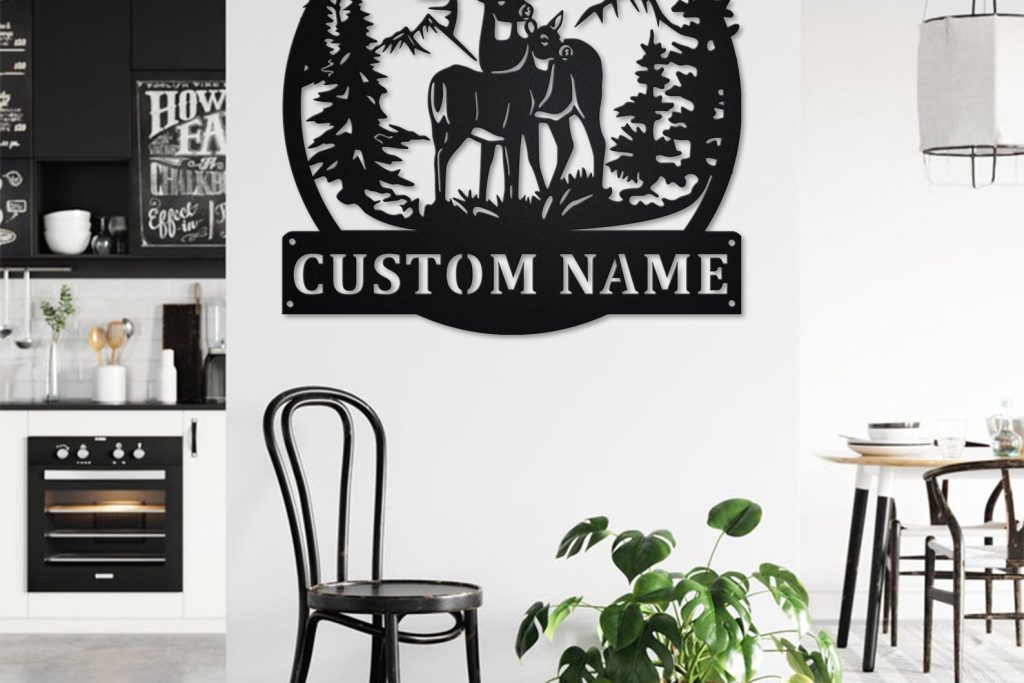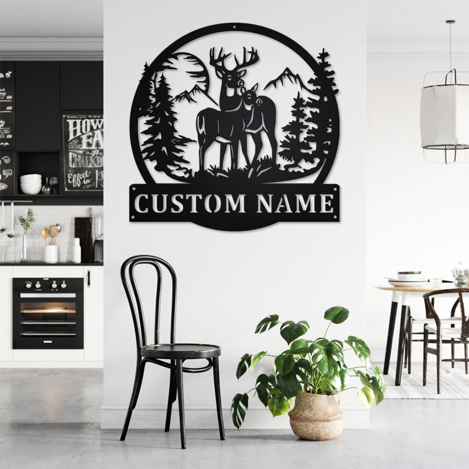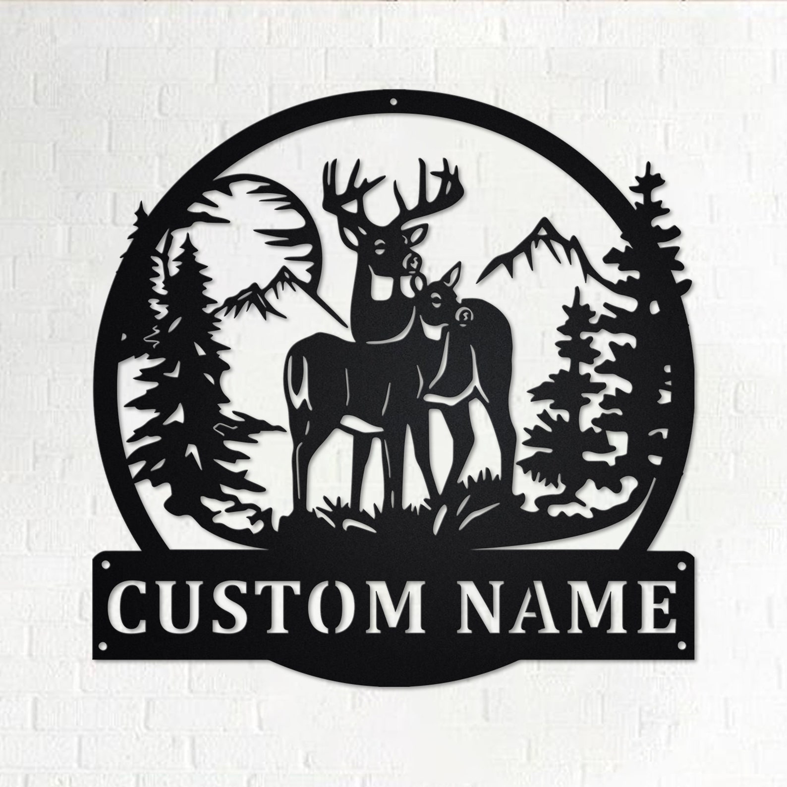 Custom Deer & Mountain Metal Sign with LED – Hunter Decor
