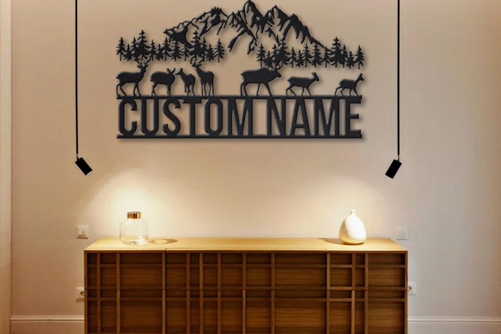 Custom Deer Mountain Metal Sign with LED – Wall Decor