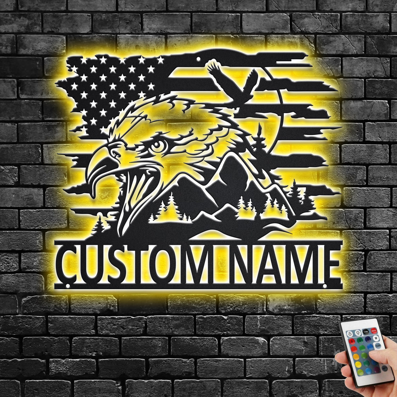 We provide the Sign with pre designed holes for hanging. You can hang the sign with screws, nails, command strips or whatever you prefer.