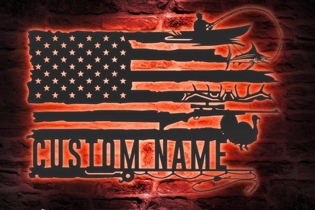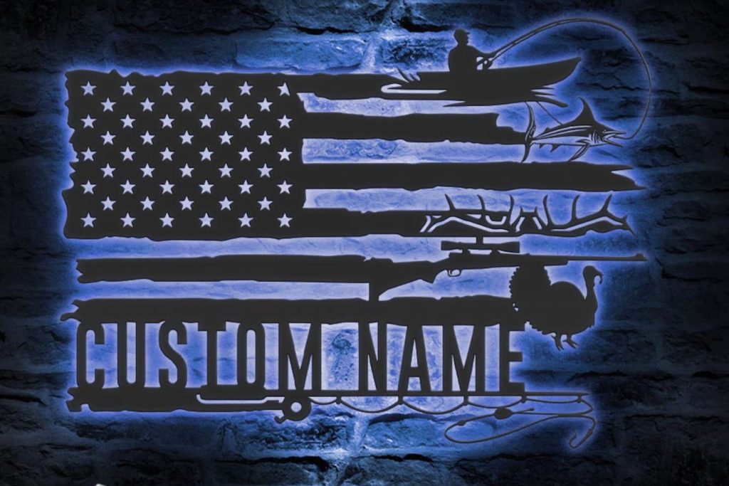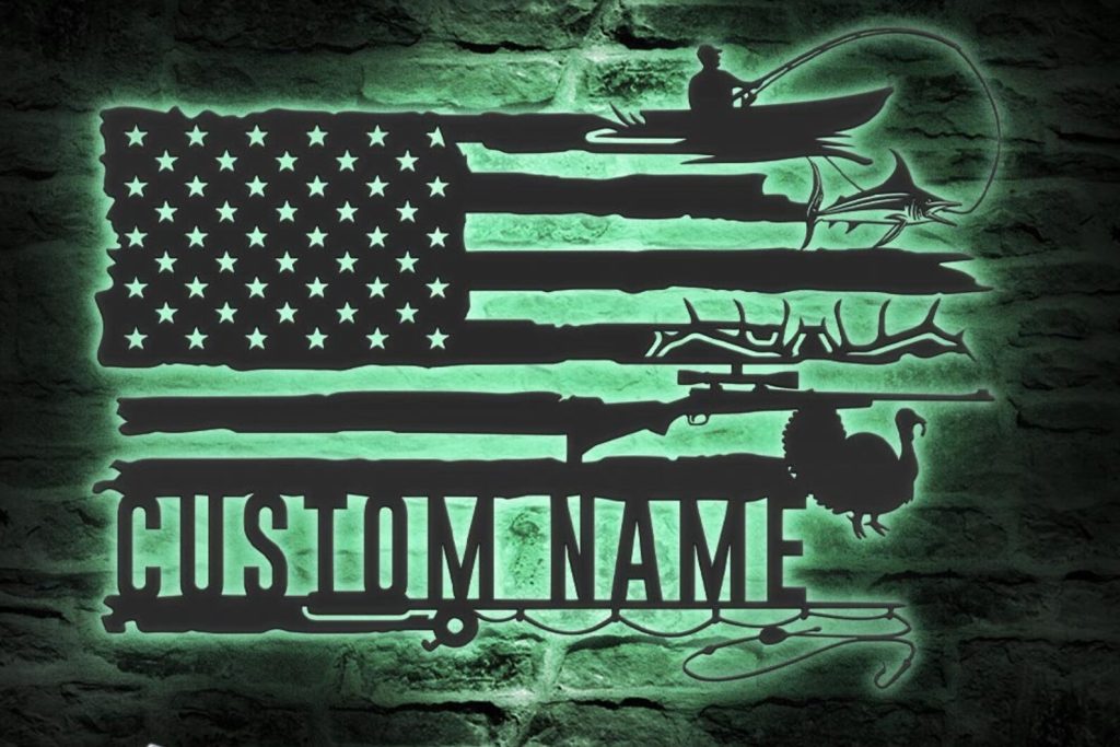 Custom Deer, Turkey, Marlin Metal Sign with LED – Cabin