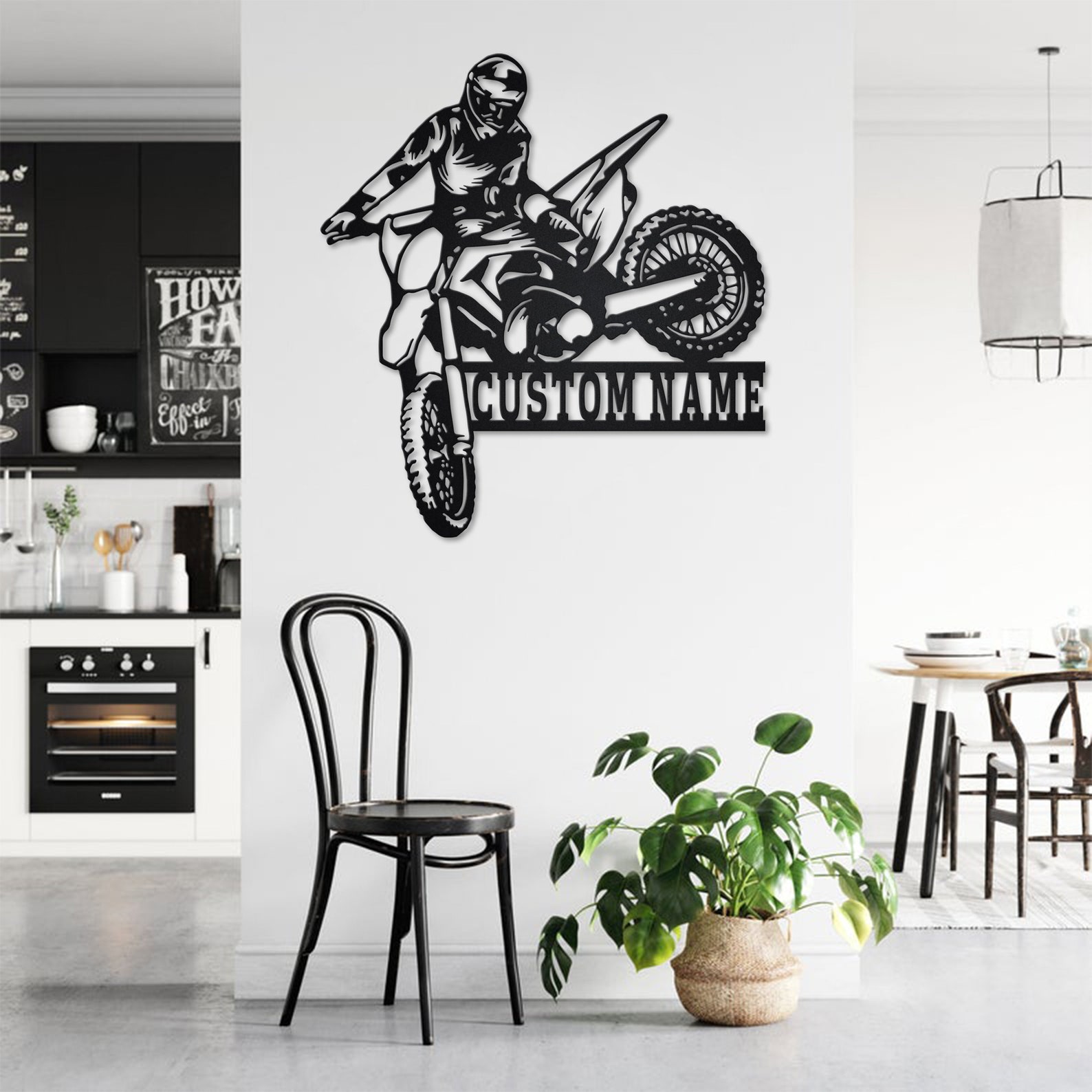 Custom Dirt Bike Metal Sign with LED – Biker Room Decoration
