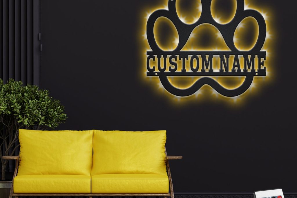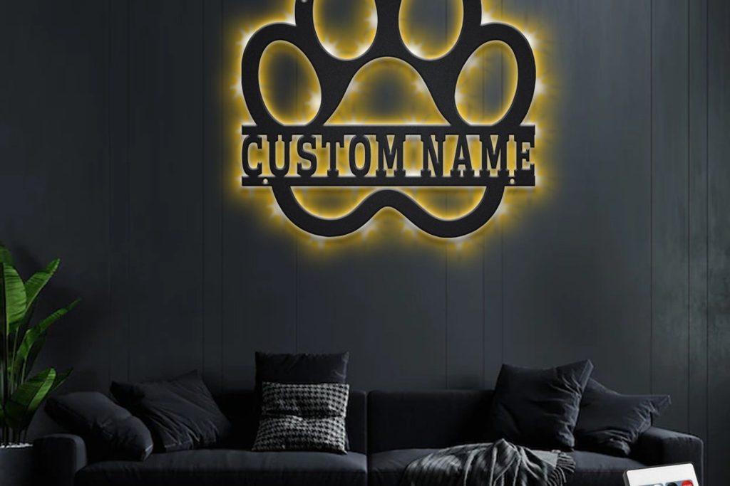Be the first to review “Custom Dog Paw Metal Wall Art with LED Light”