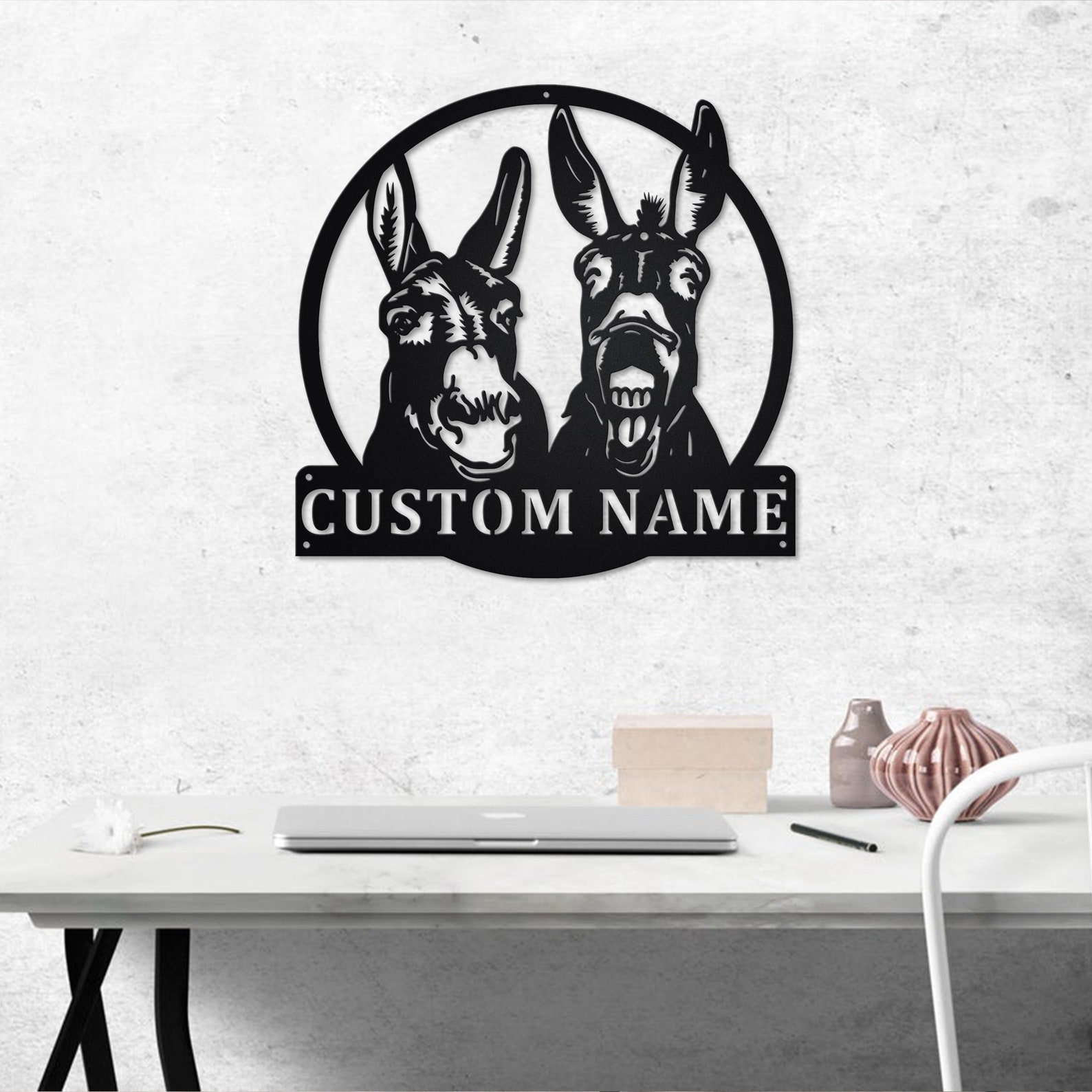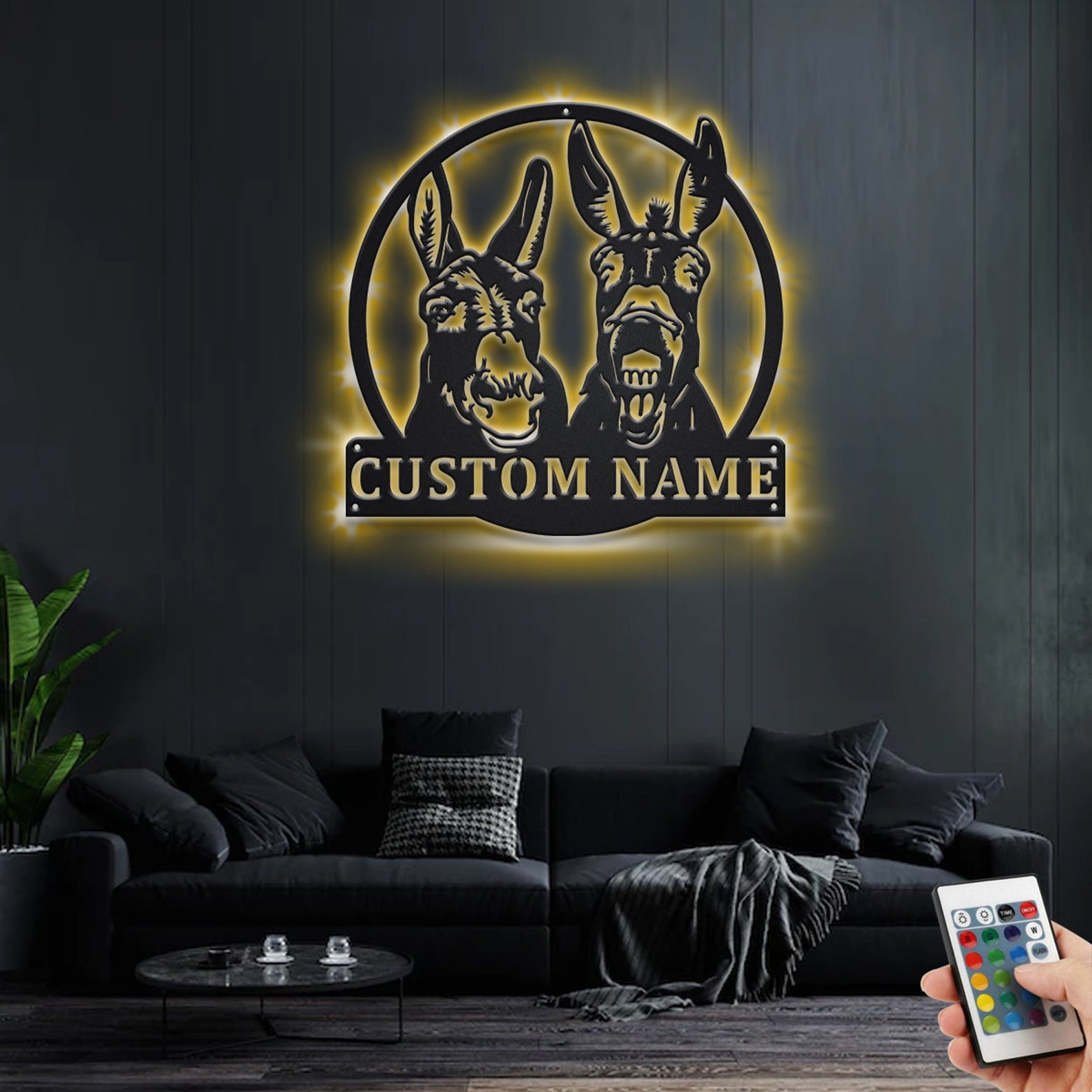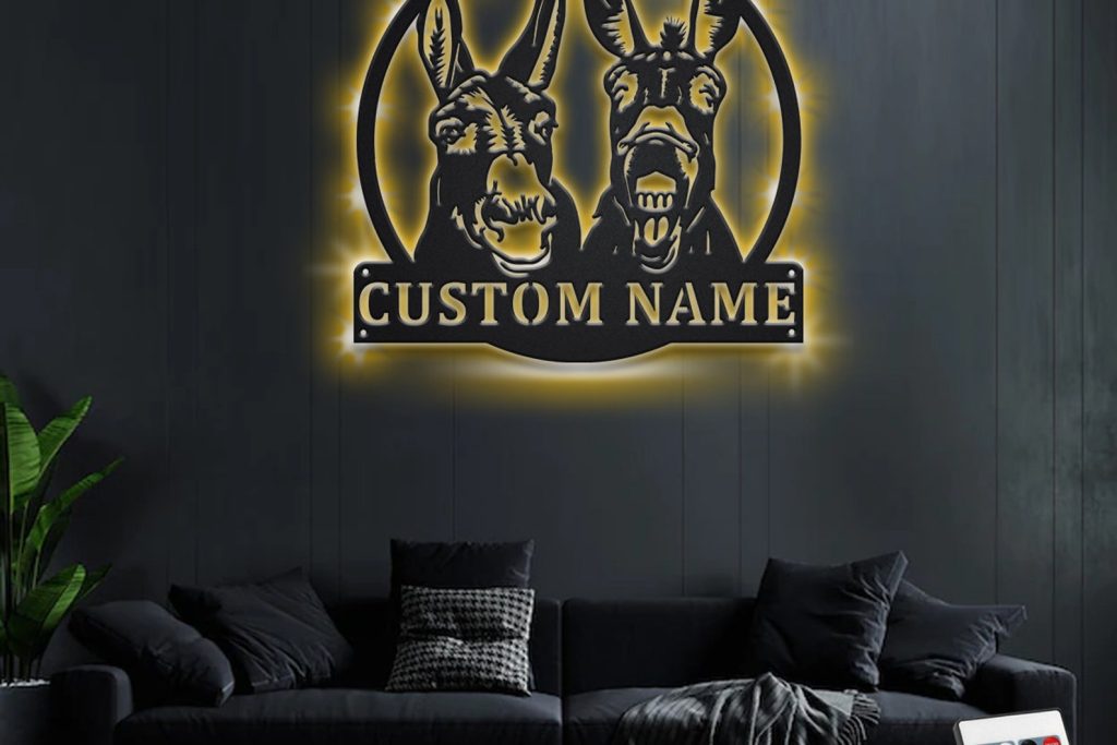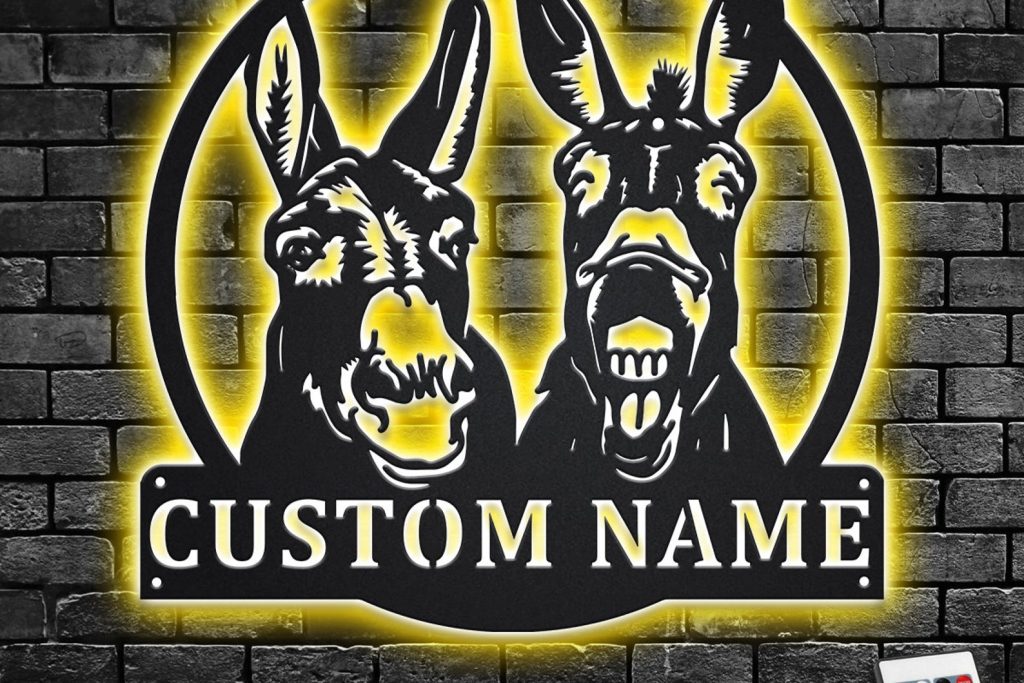 Custom Donkey Metal Wall Art with LED – Personalized Name Sign