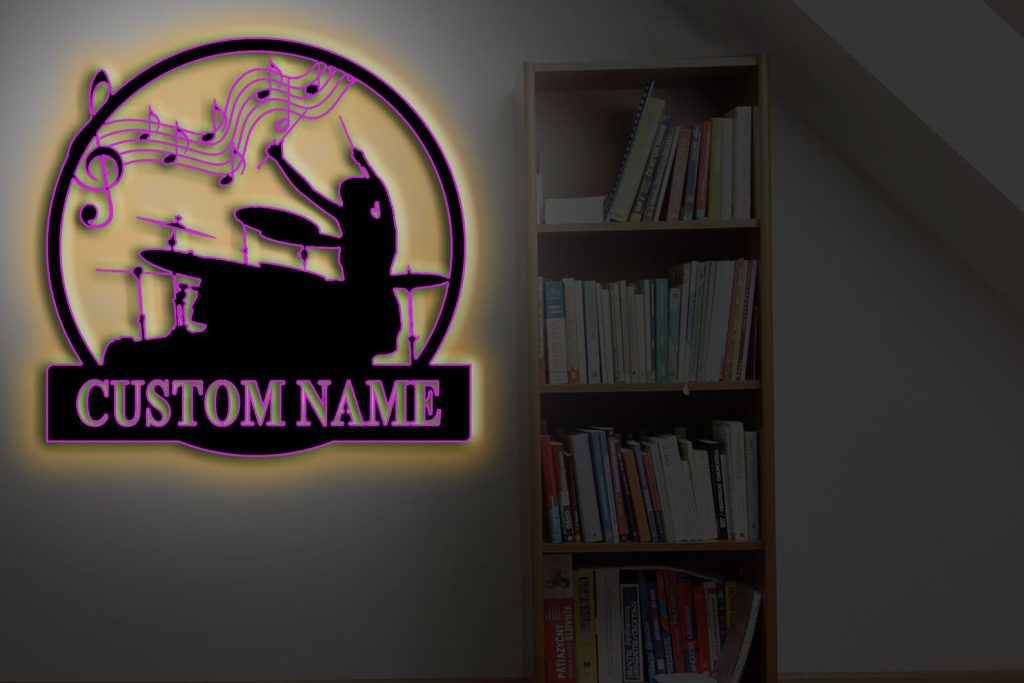Custom Drummer Metal Sign with LED