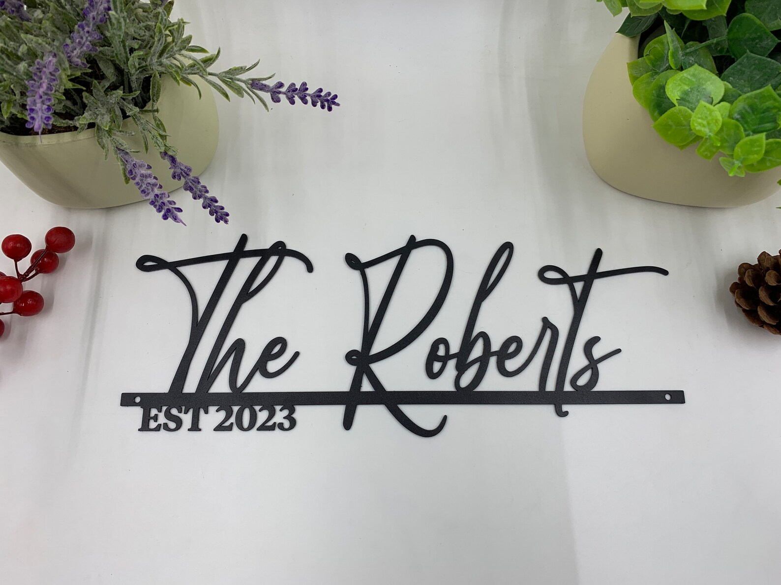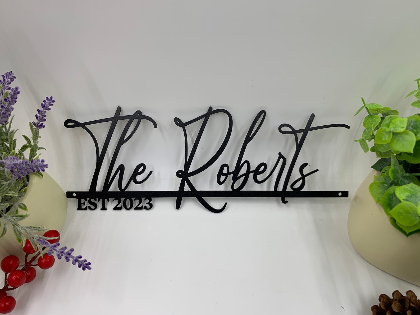 Introducing our Custom Family Name Metal Sign, a piece that beautifully encapsulates the warmth of home and the bond of family. Handcrafted with care, each sign features a handwritten-style script of your family surname, accompanied by an "Established" year, perfect for commemorating significant dates and milestones.