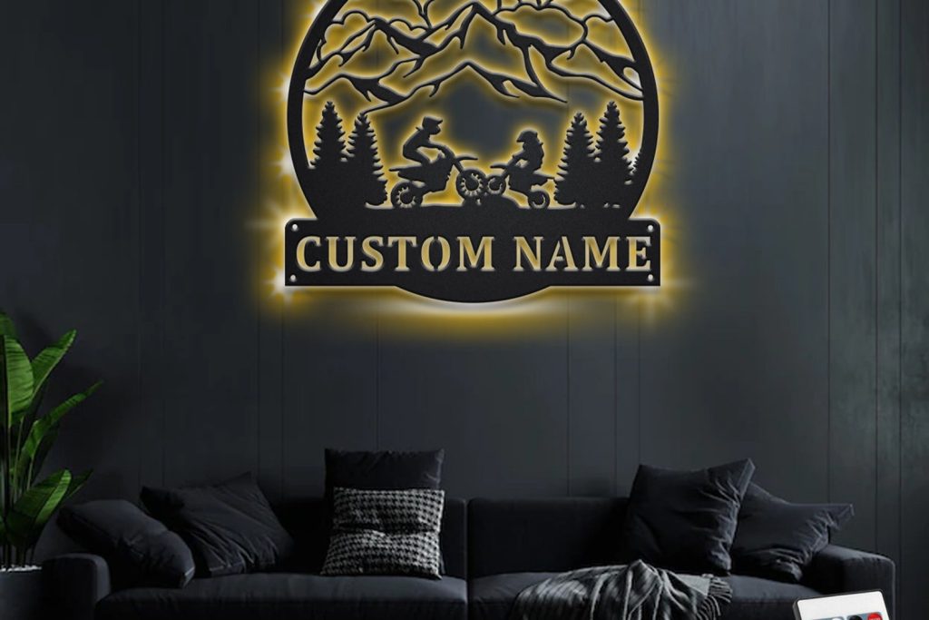 Custom Father & Son Motorcycle Metal Sign with LED – Room Art