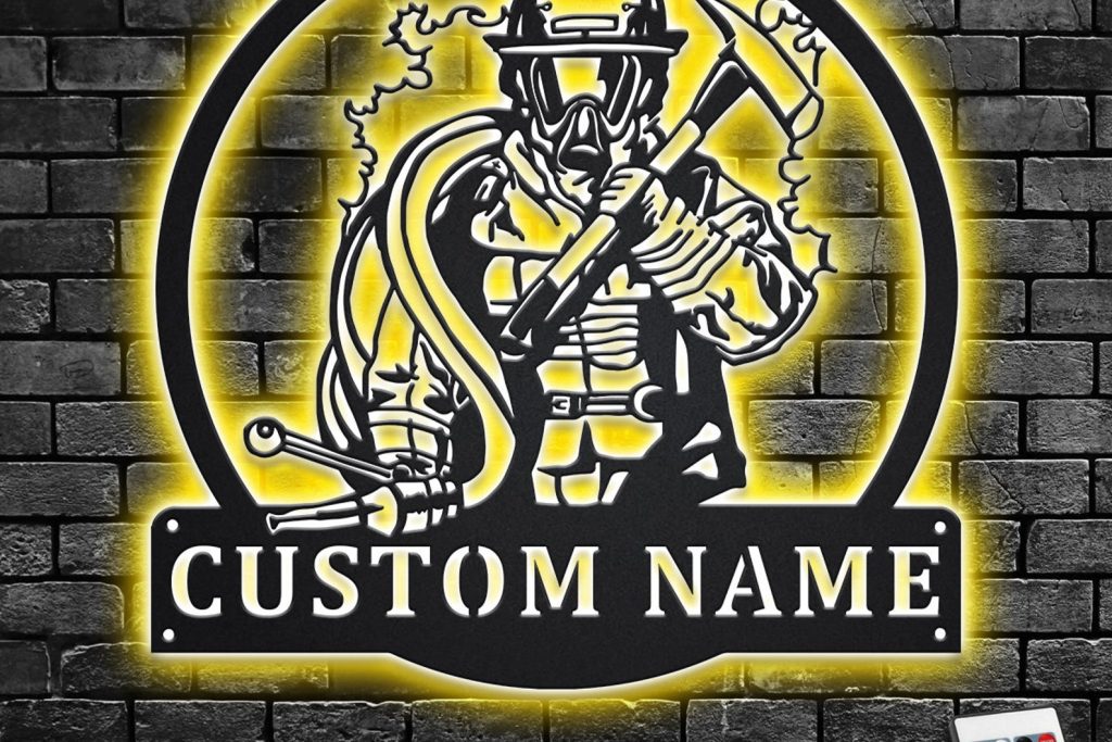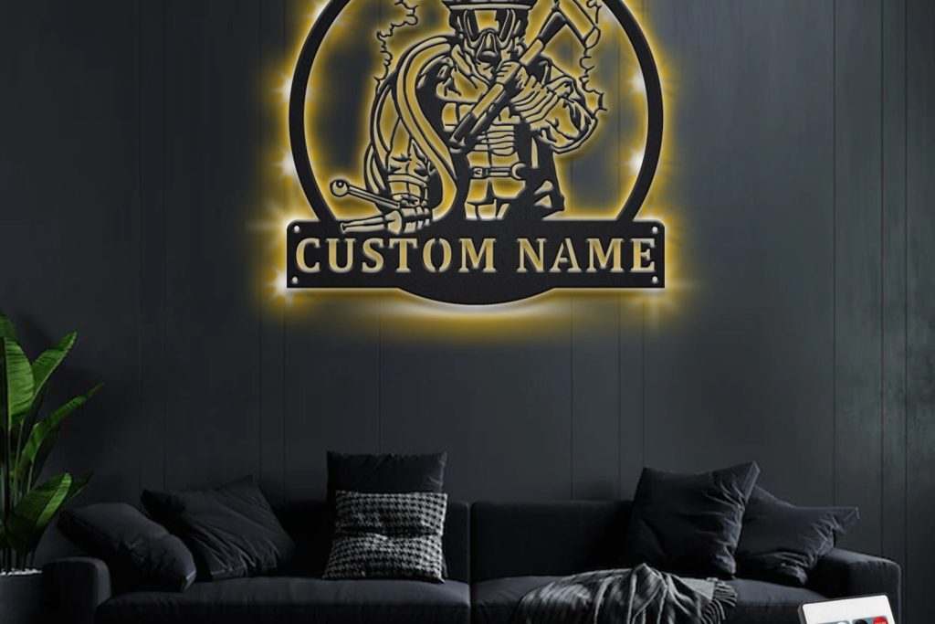 Be the first to review “Custom Fireman Metal Wall Art with LED Light”