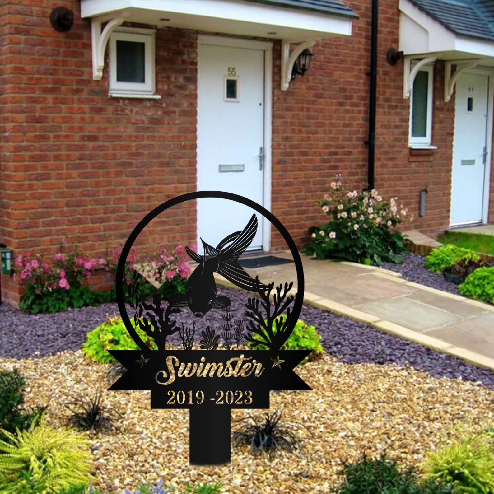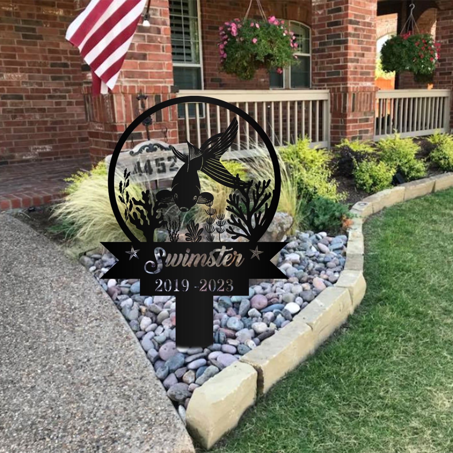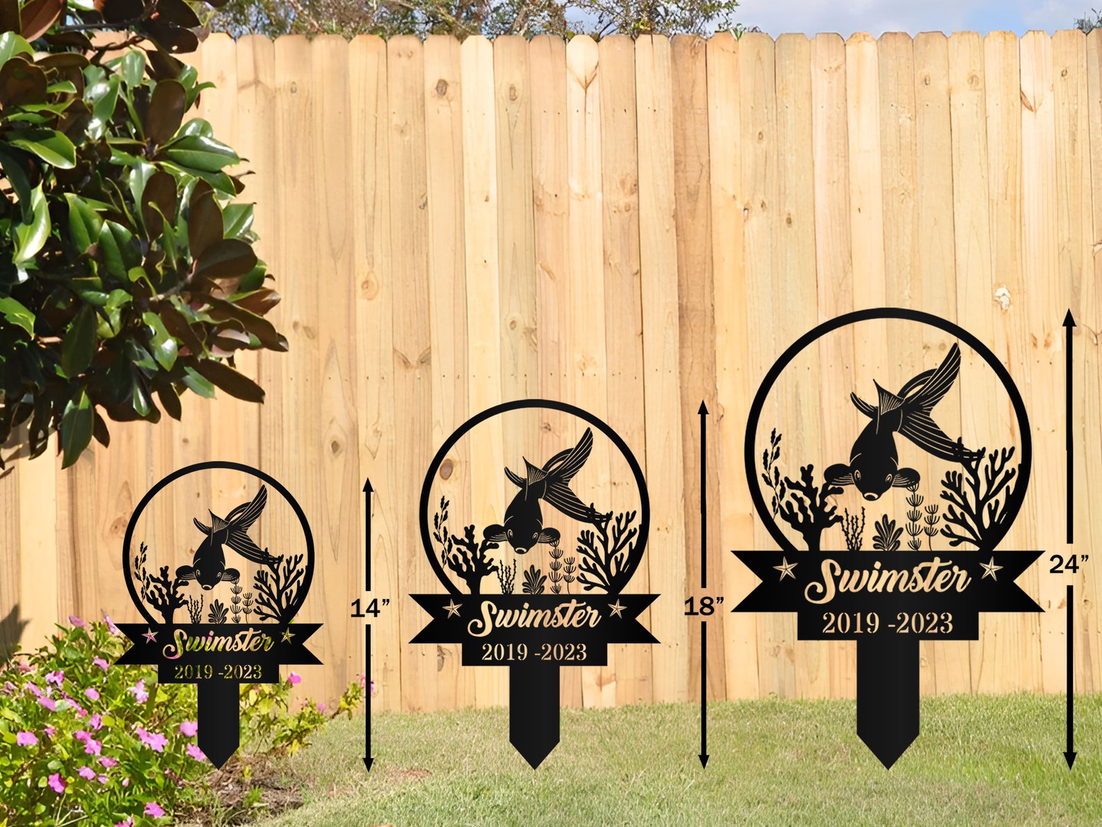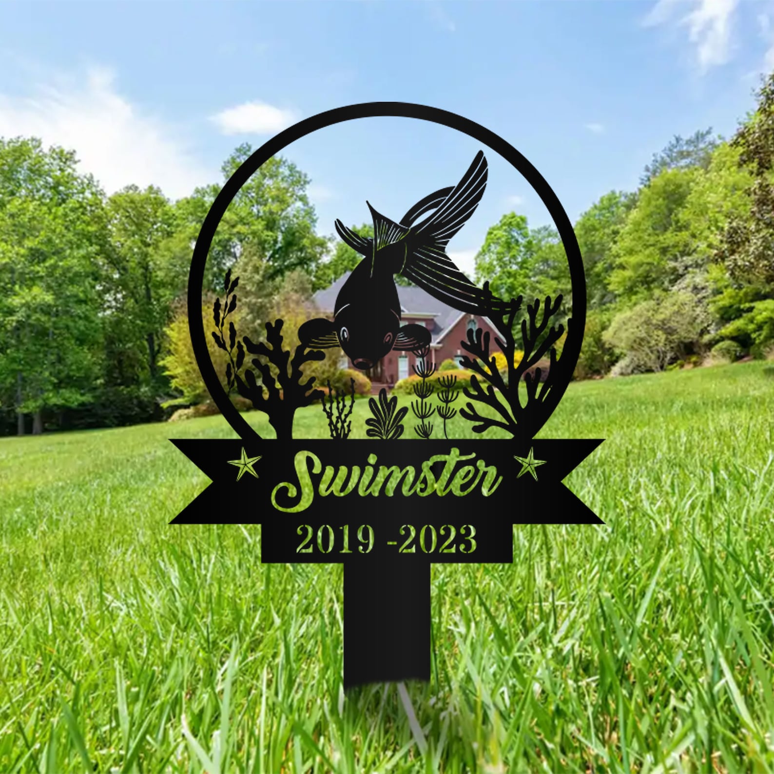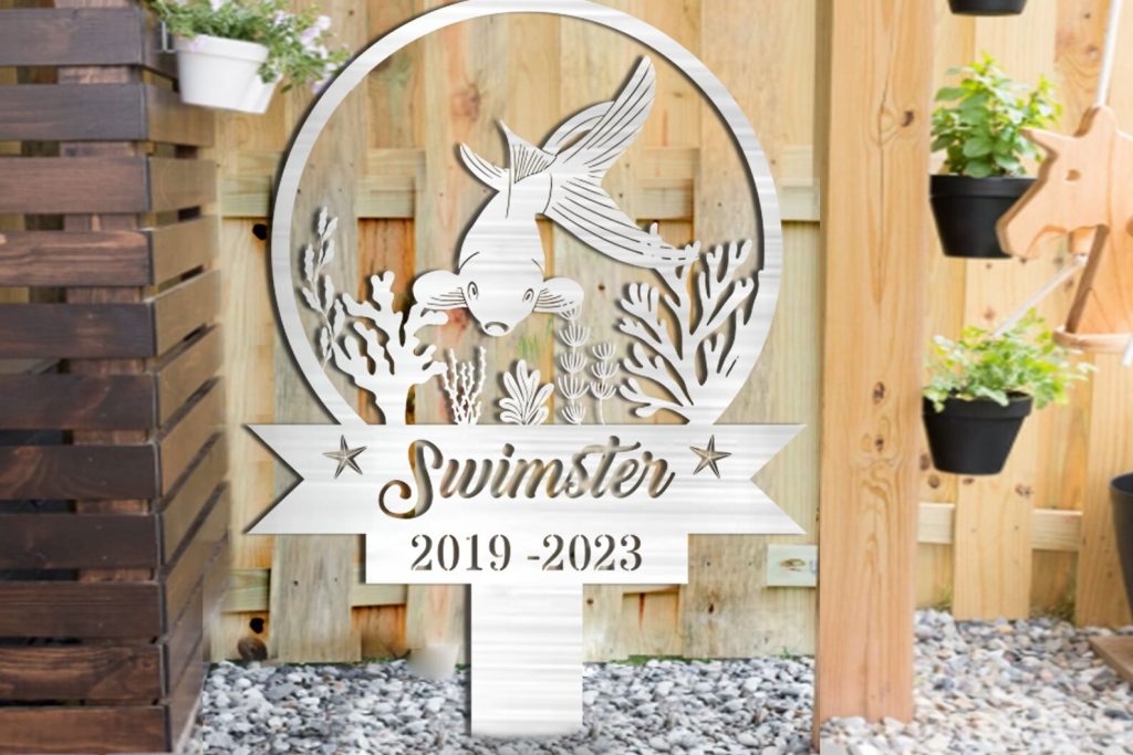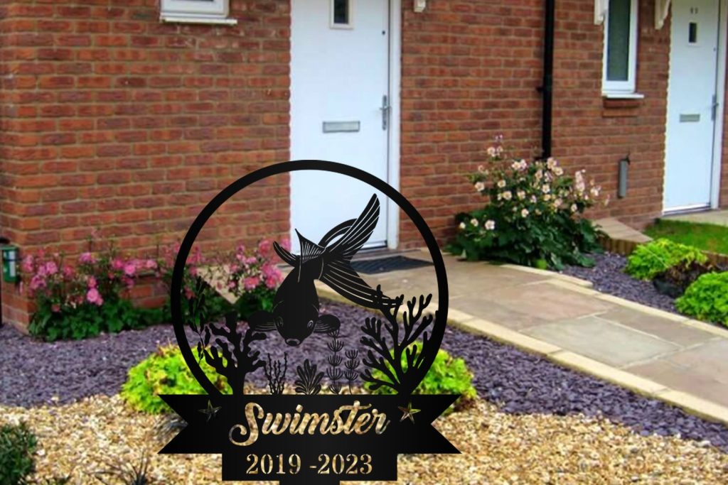 Custom Fish Pet Memorial Garden Stake,Personalized Grave Marker Stake,Fish Memorial Metal Sign,Yard Stake,Outdoor Fish Garden Decor