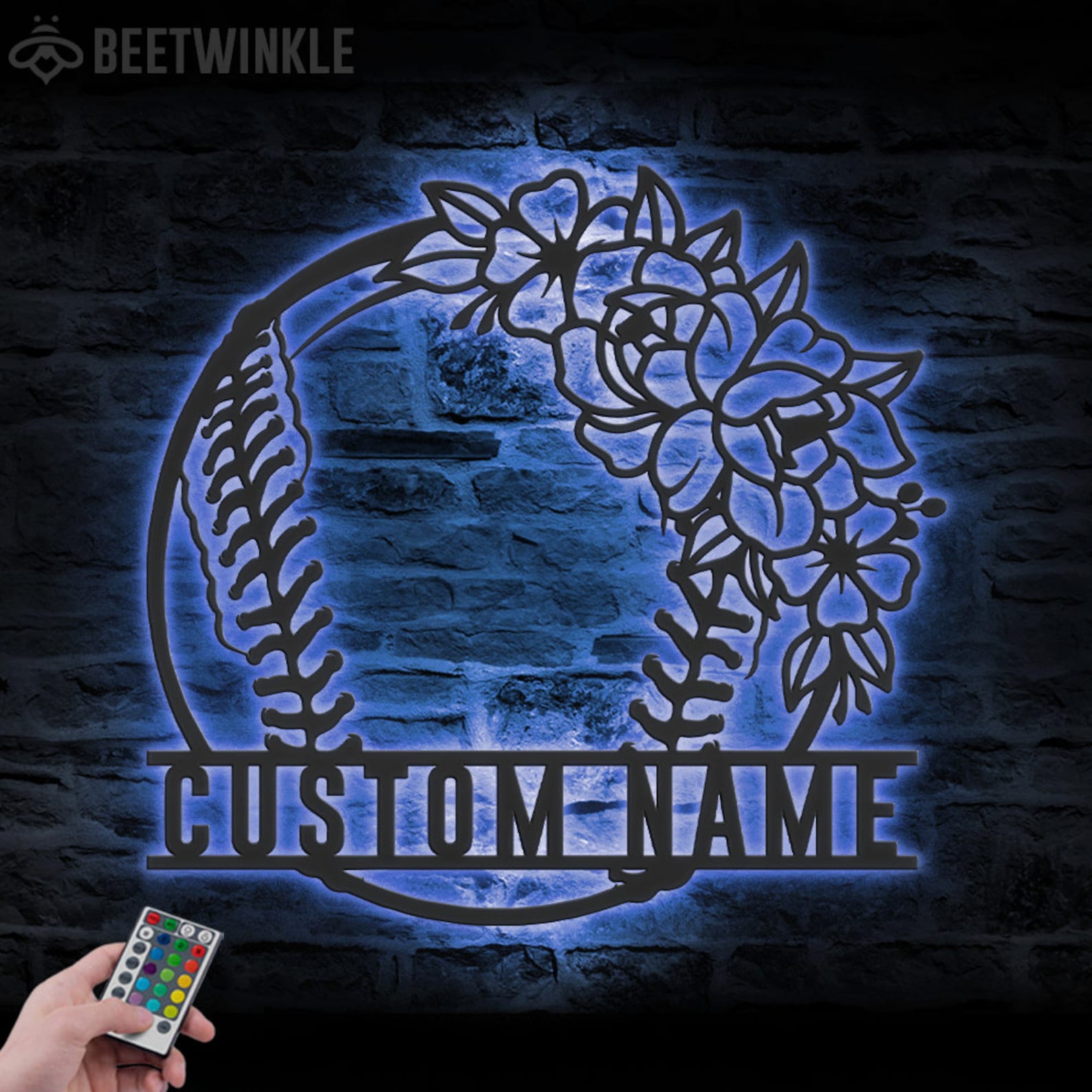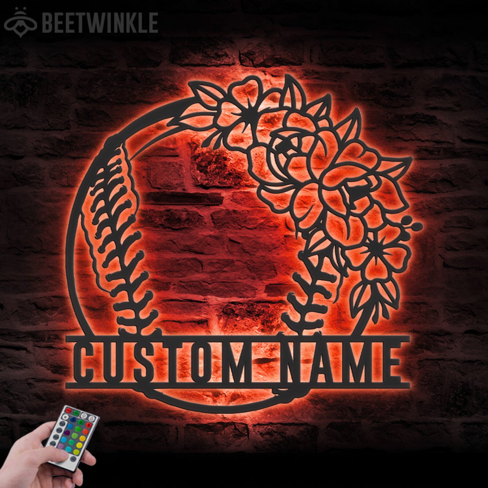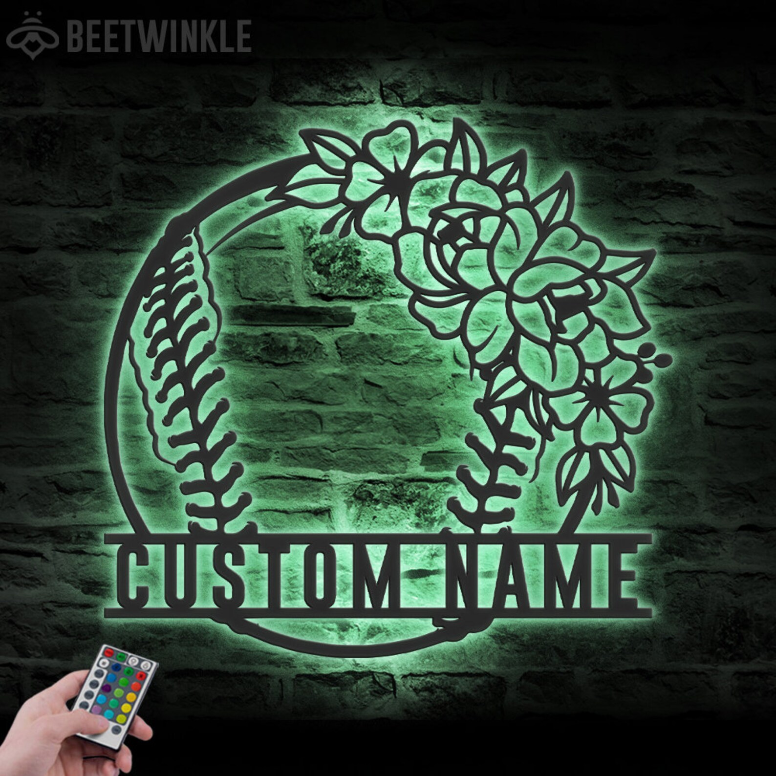 Be the first to review “Custom Floral Baseball Mom Metal Art with LED Light”