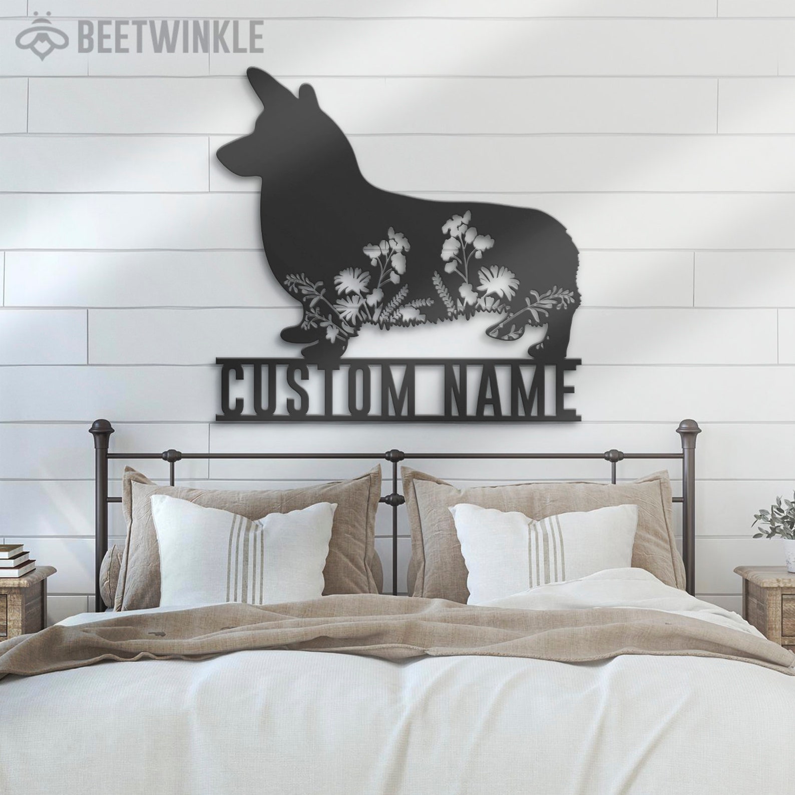 Be the first to review “Custom Floral Corgi Metal Wall Art with LED Light, Personalized Name Sign”