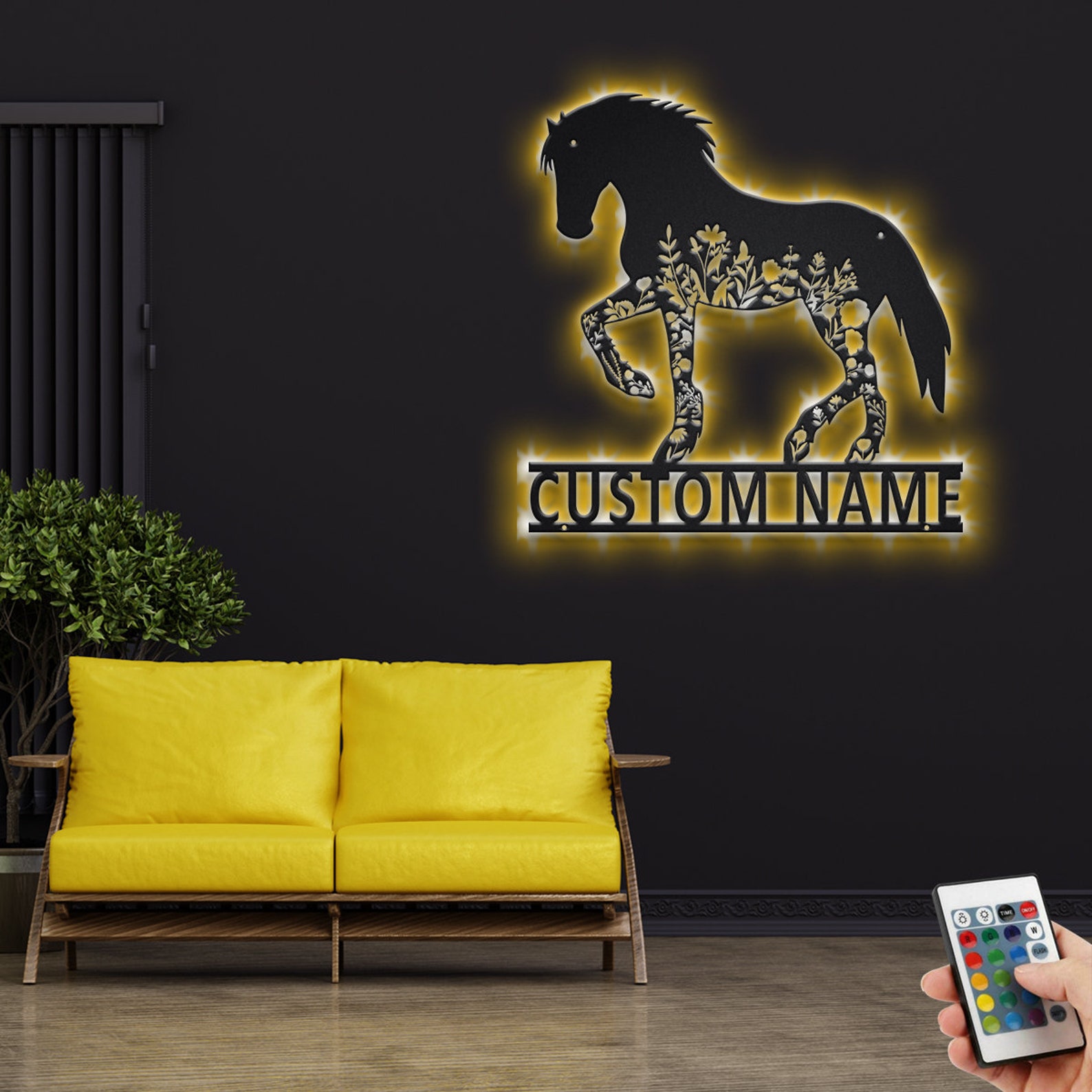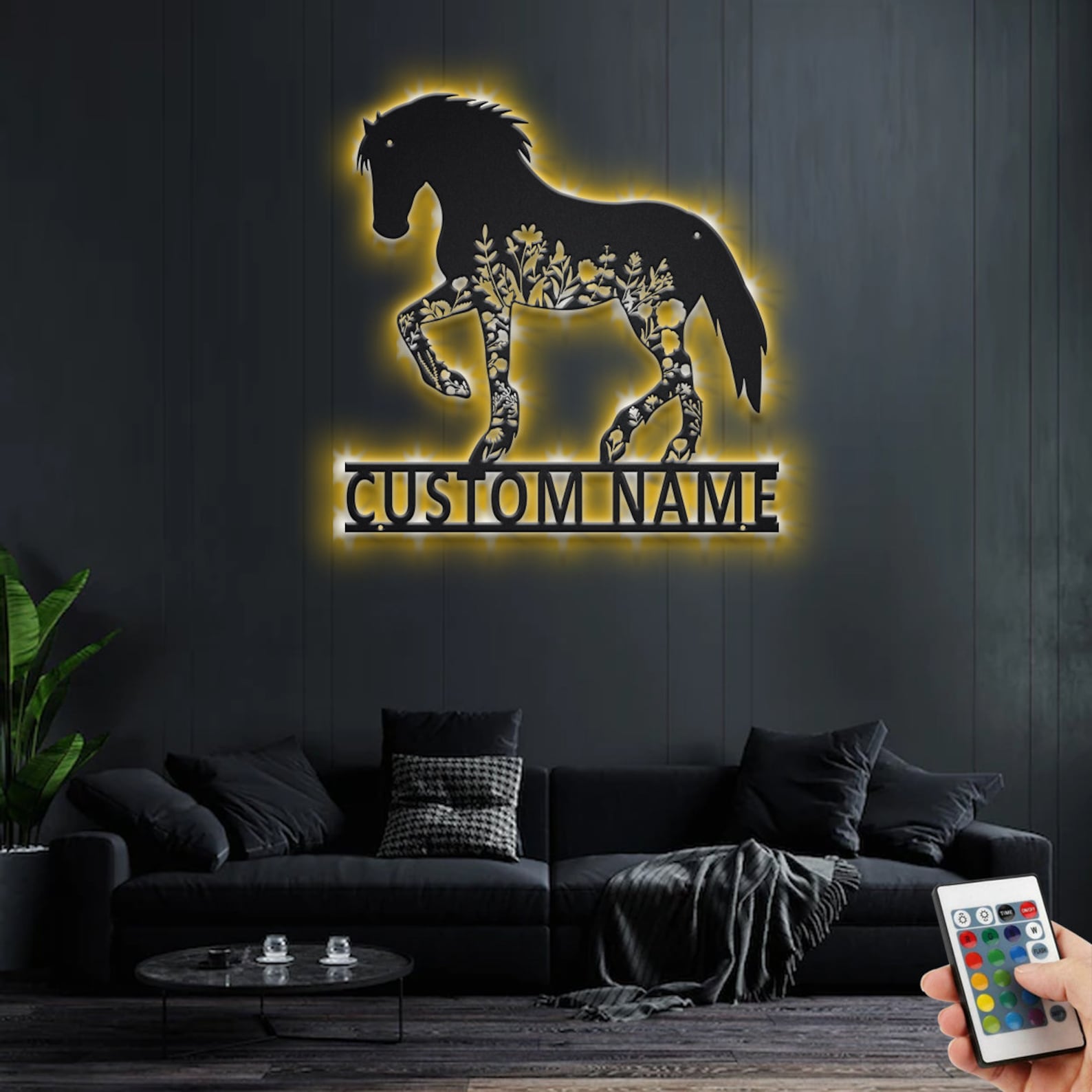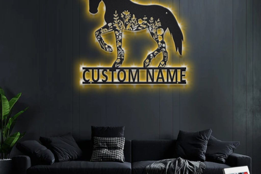 Be the first to review “Custom Floral Horse Metal Sign with LED – Personalized Decor”