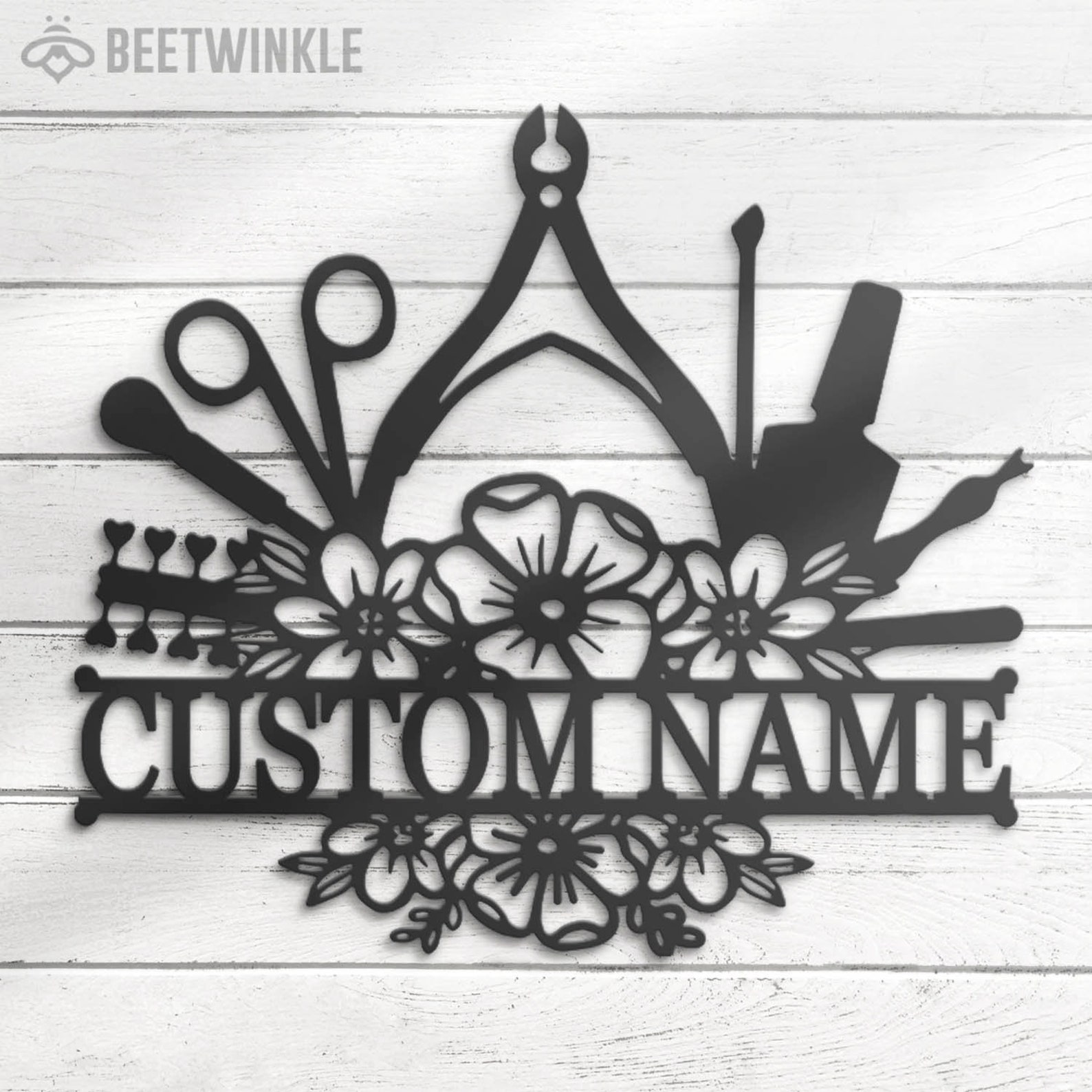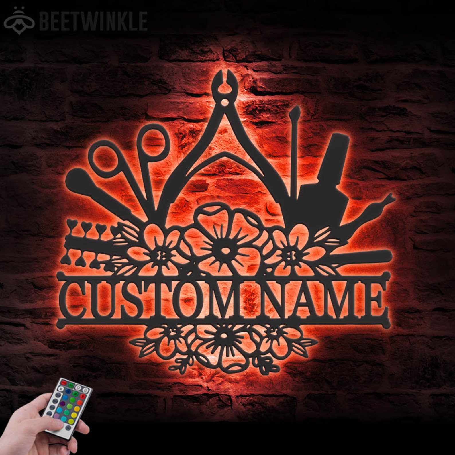 Be the first to review “Custom Floral Nail Tech Metal Wall Art – LED Light, Personalized Sign”
