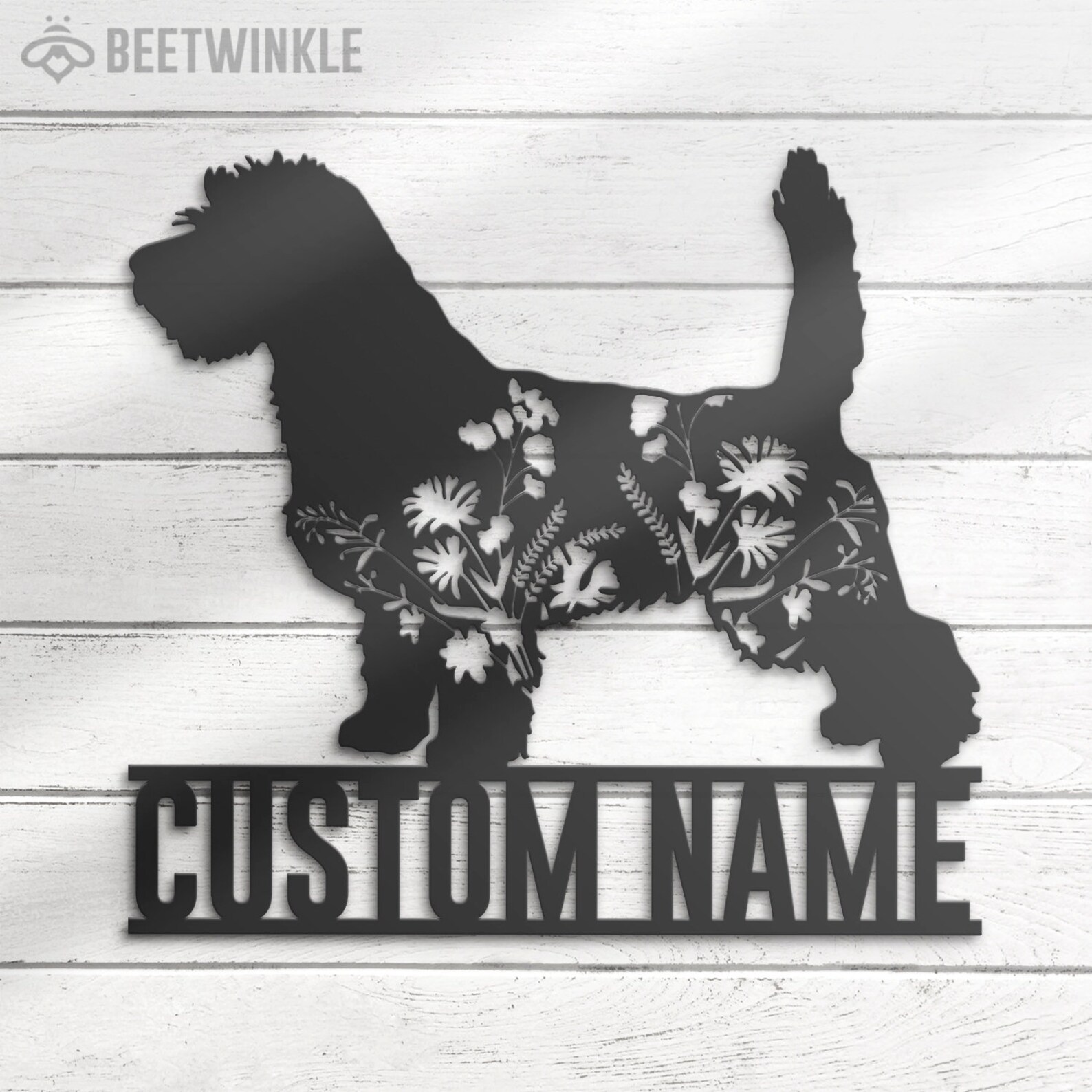 Be the first to review “Custom Floral PBGV LED Metal Art – Dog Lover Name Sign”