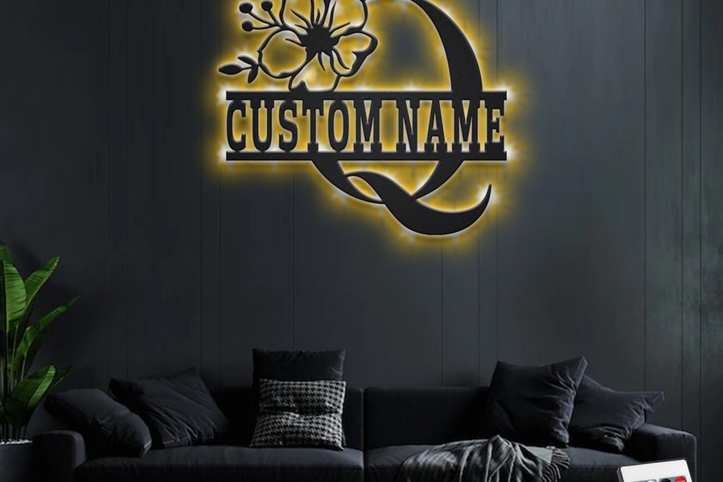 Be the first to review “Custom Floral Q Metal Sign with LED, Family Decor”