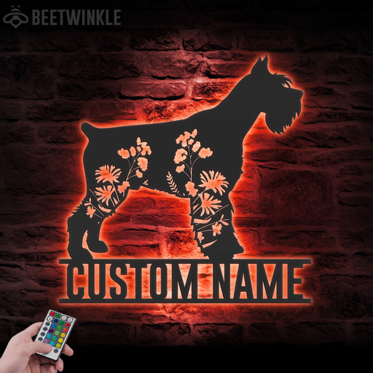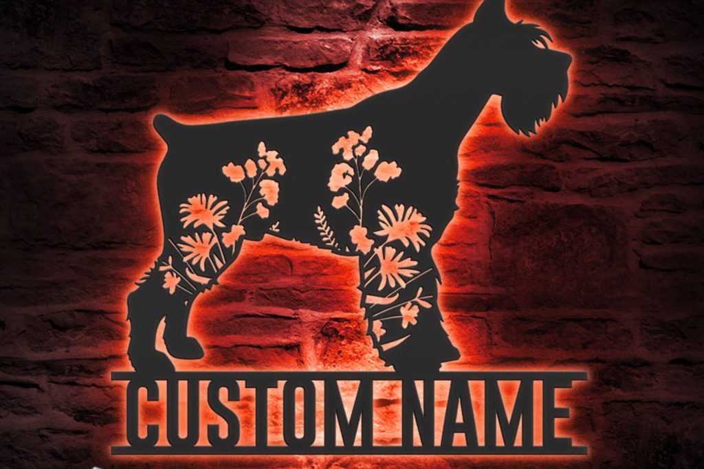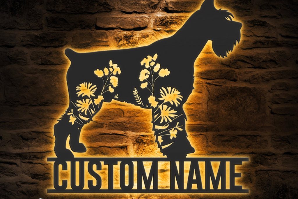 Be the first to review “Custom Floral Standard Schnauzer Metal Sign with LED – Decor”