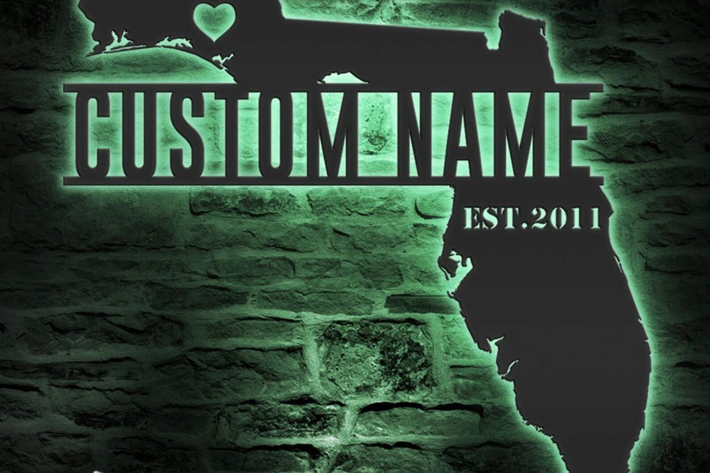 Be the first to review “Custom Florida Map Metal Art with LED & State Name”