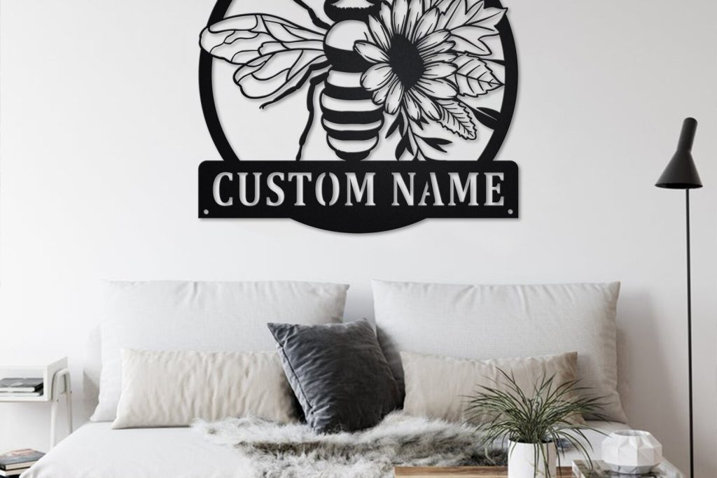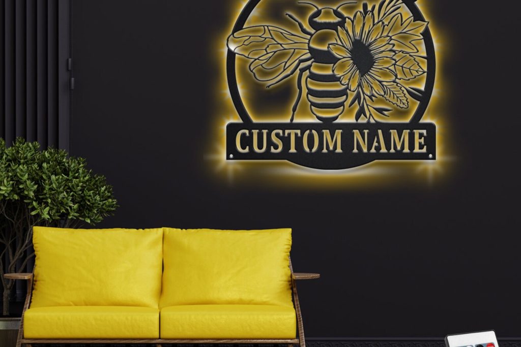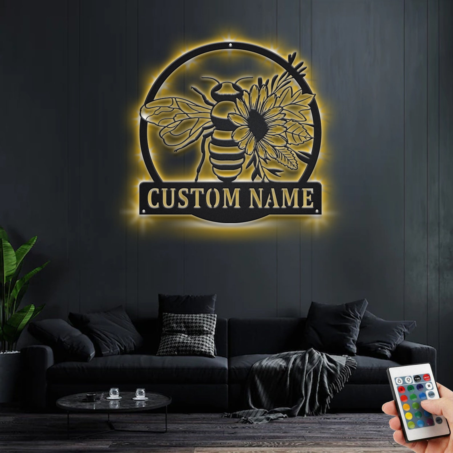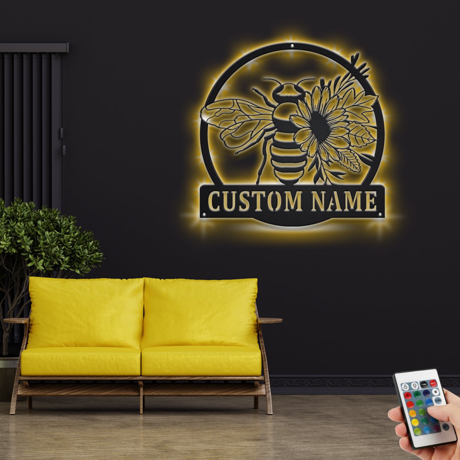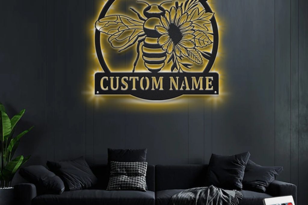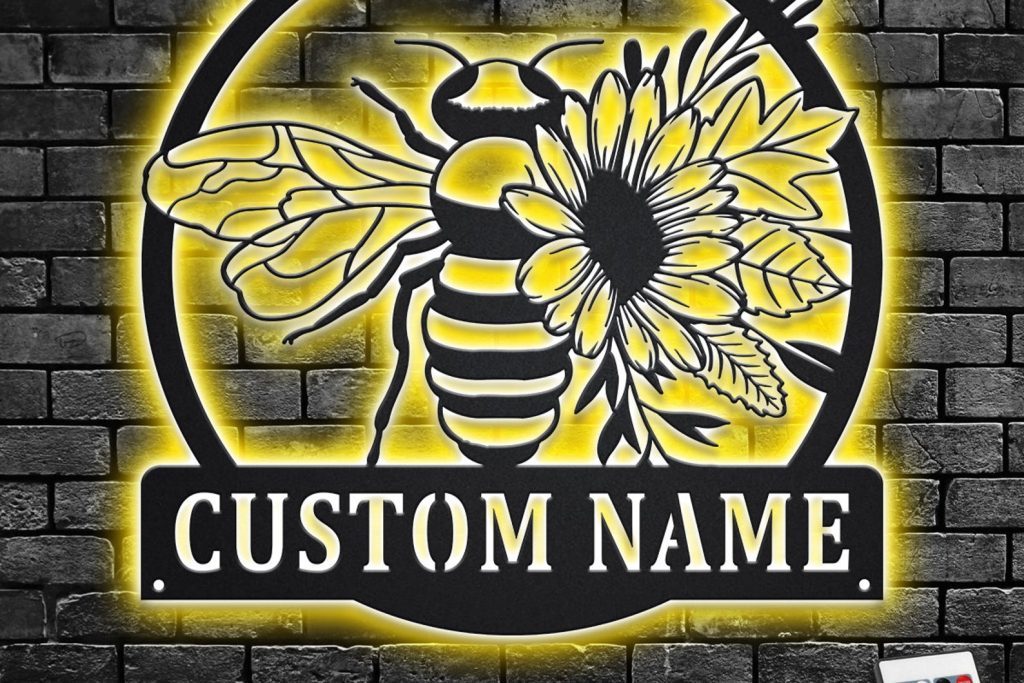 Custom Flower Bee Metal Sign with LED – Room Decoration